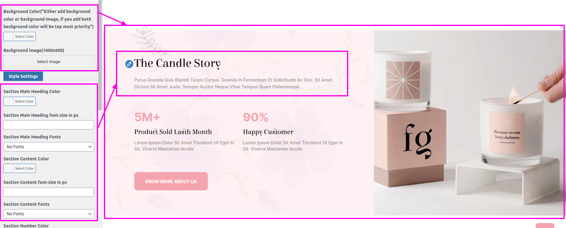 Select The Appearance → Select The Customize → Theme Settings → The candle story → Style Settings
