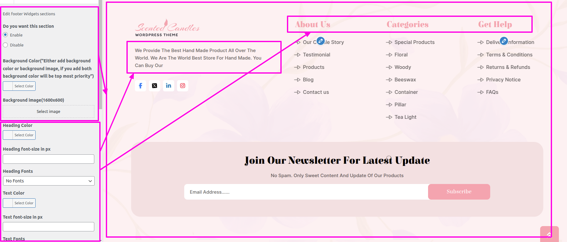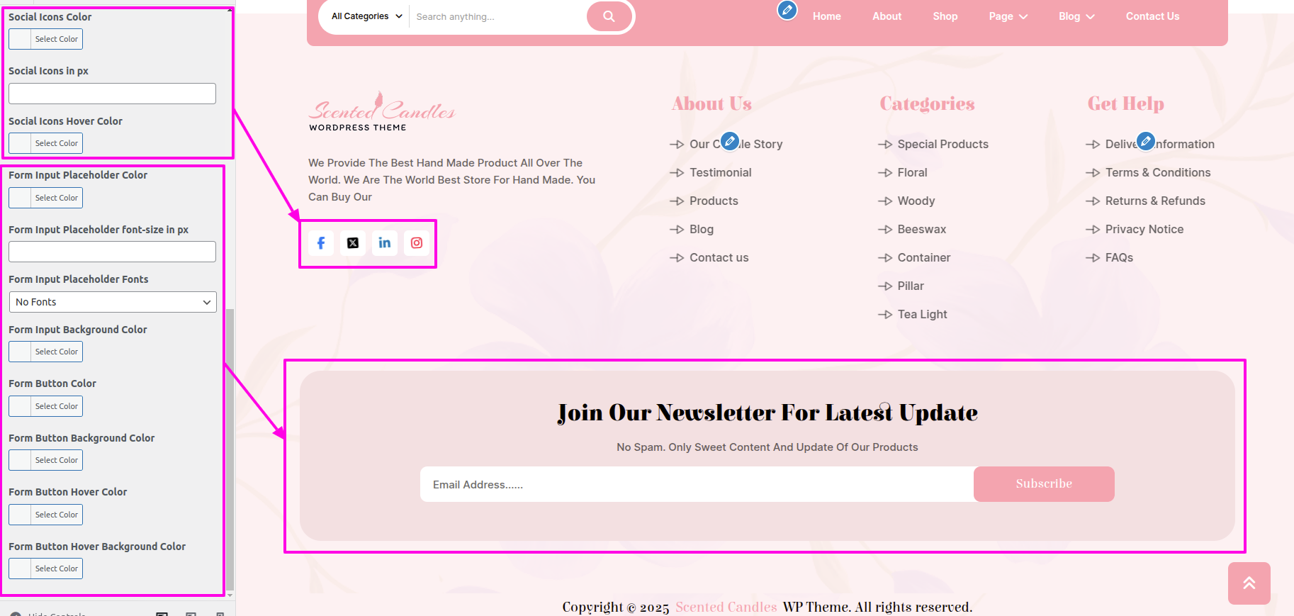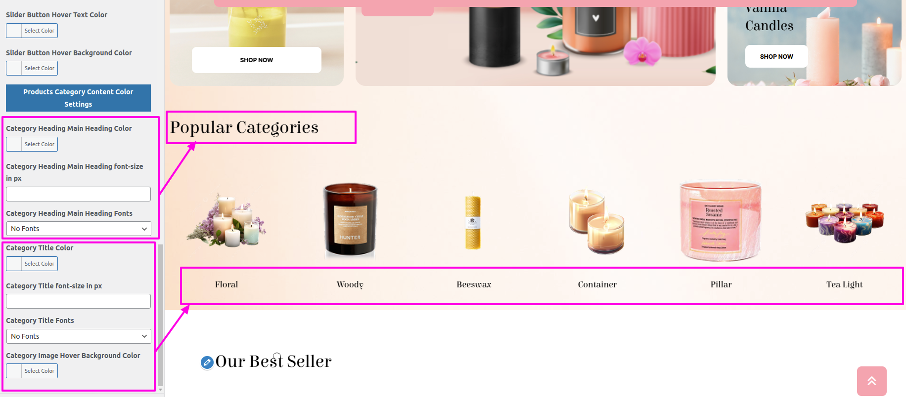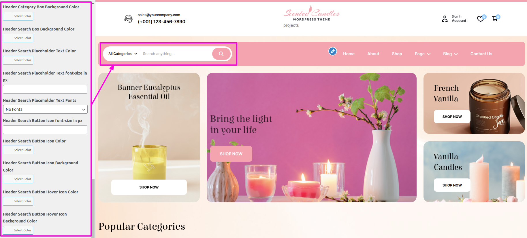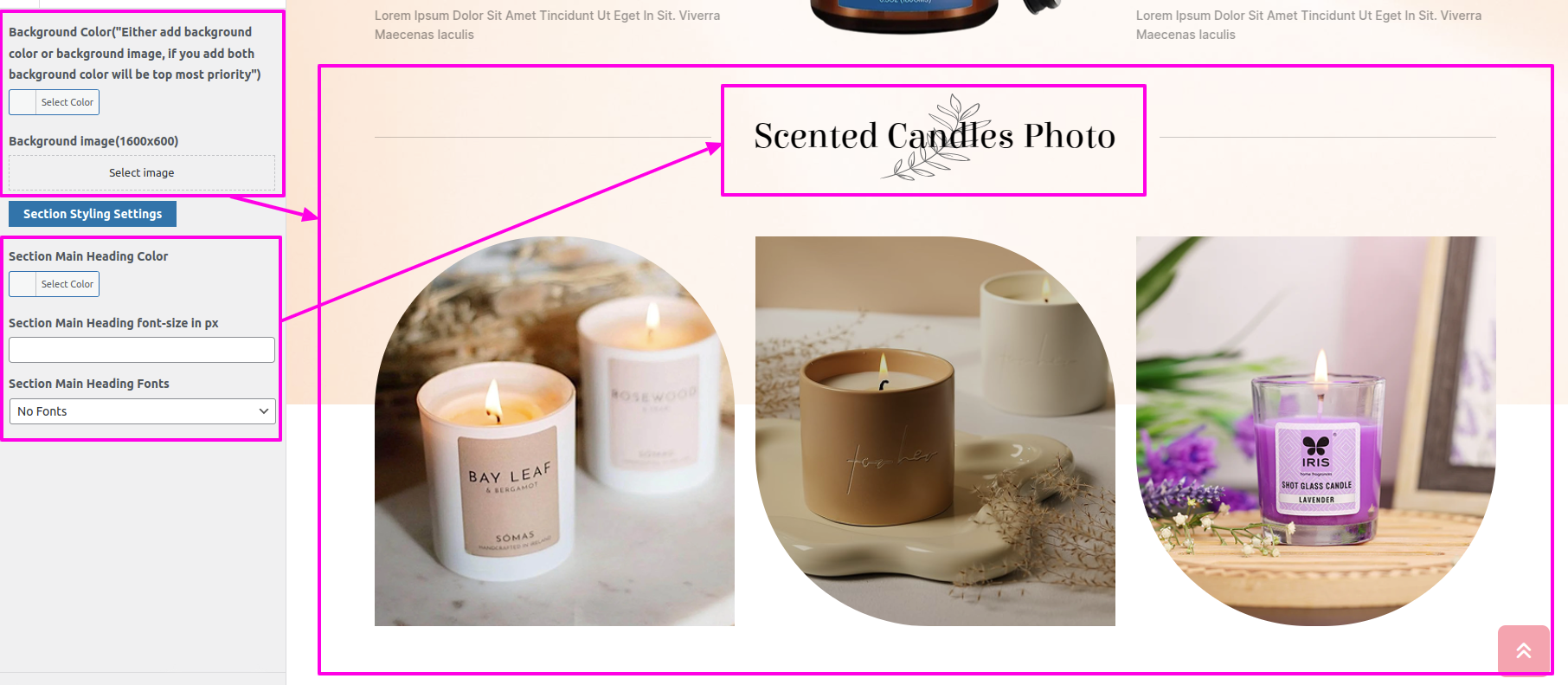 Select The Appearance → Select The Customize → Theme Settings → Scented Candles Photo → Style Settings