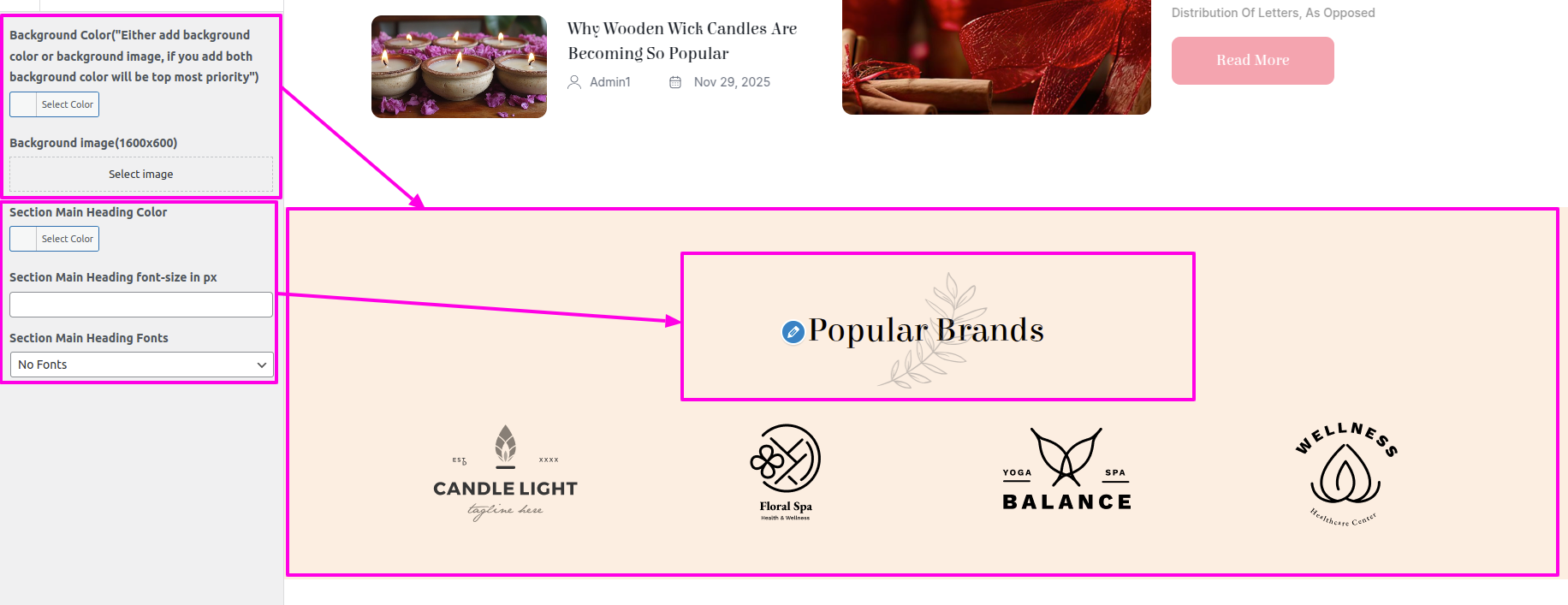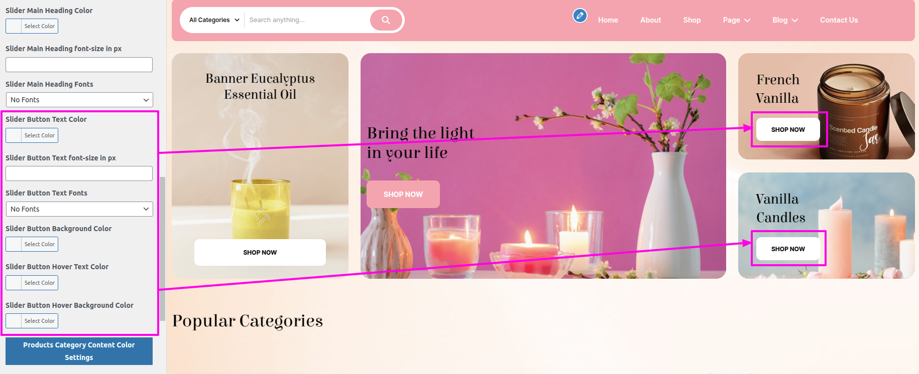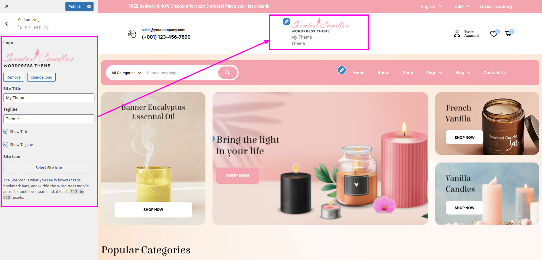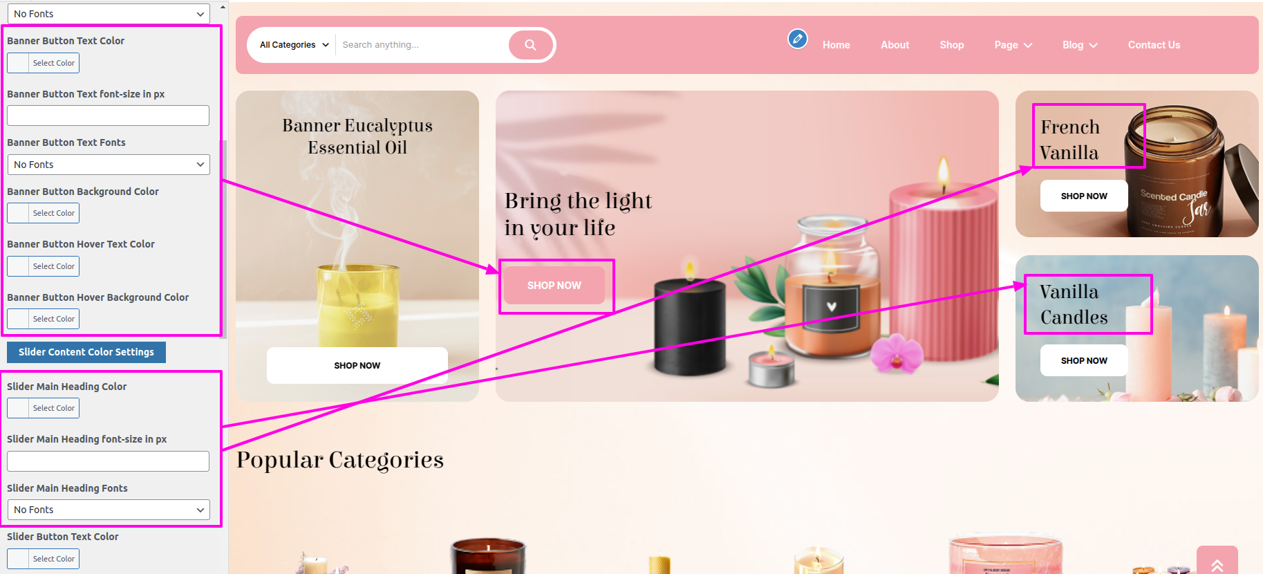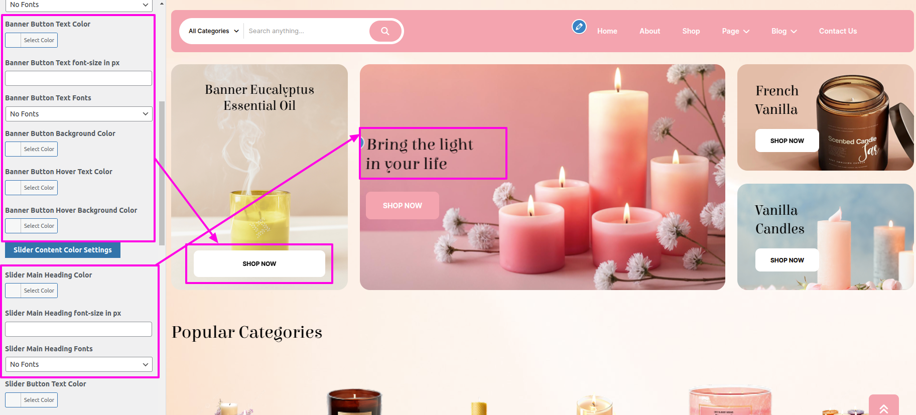 Select The Appearance → Select The Customize → Theme Settings → Scented Candles Photo → Style Settings