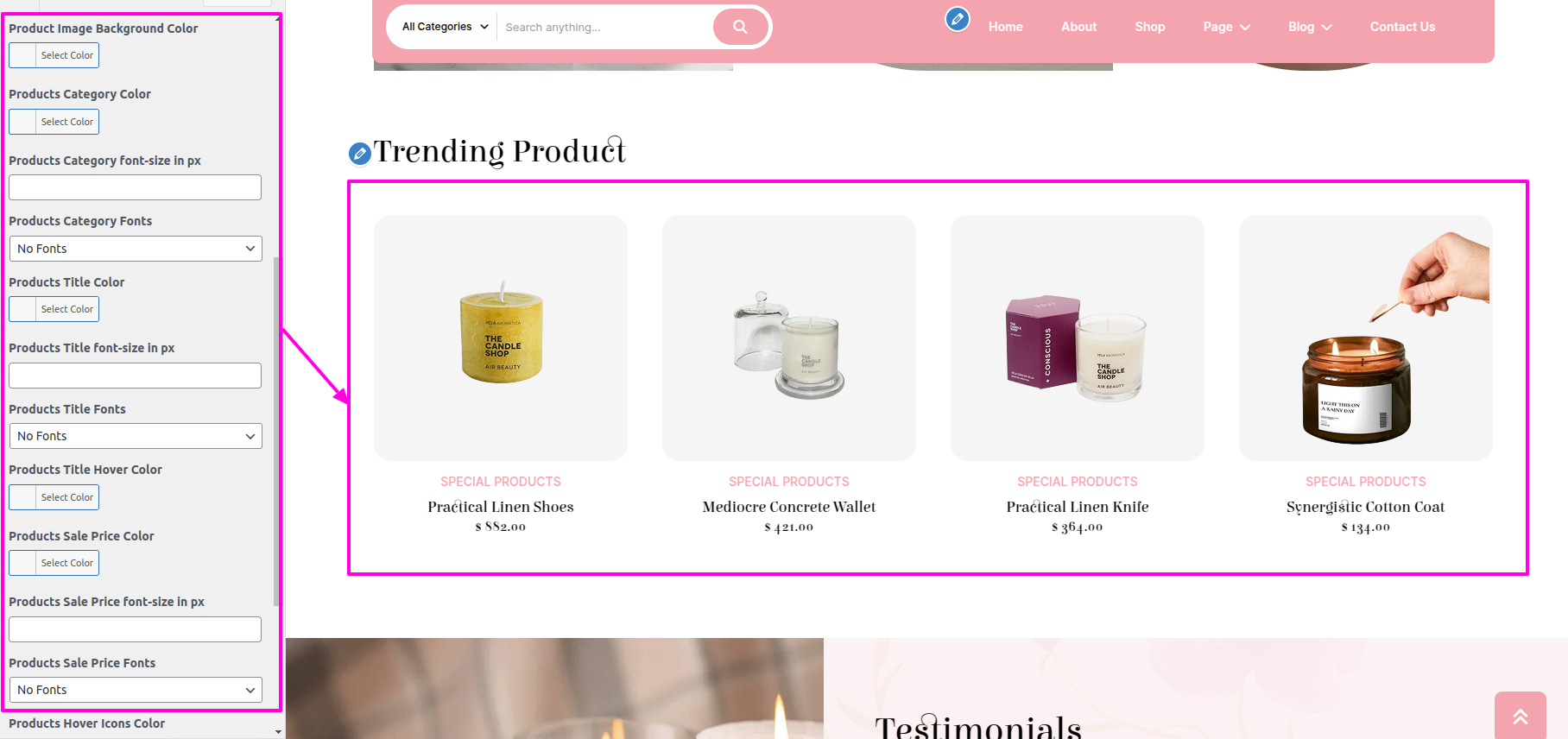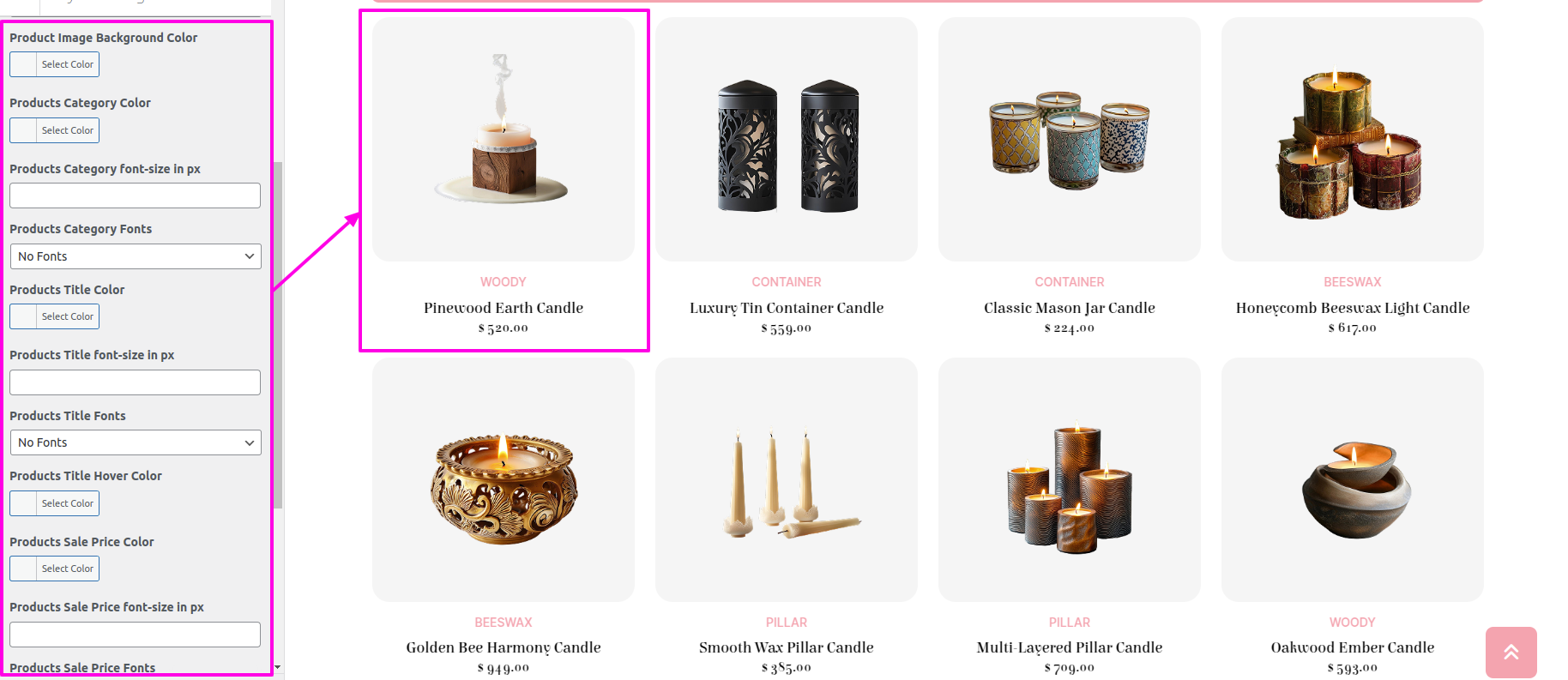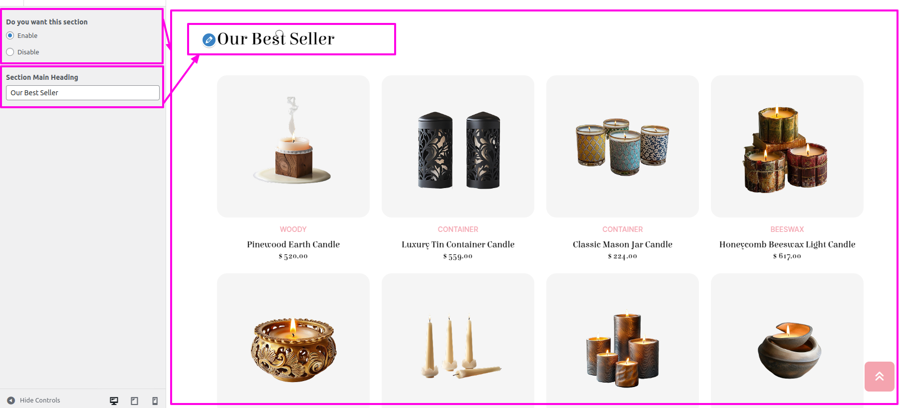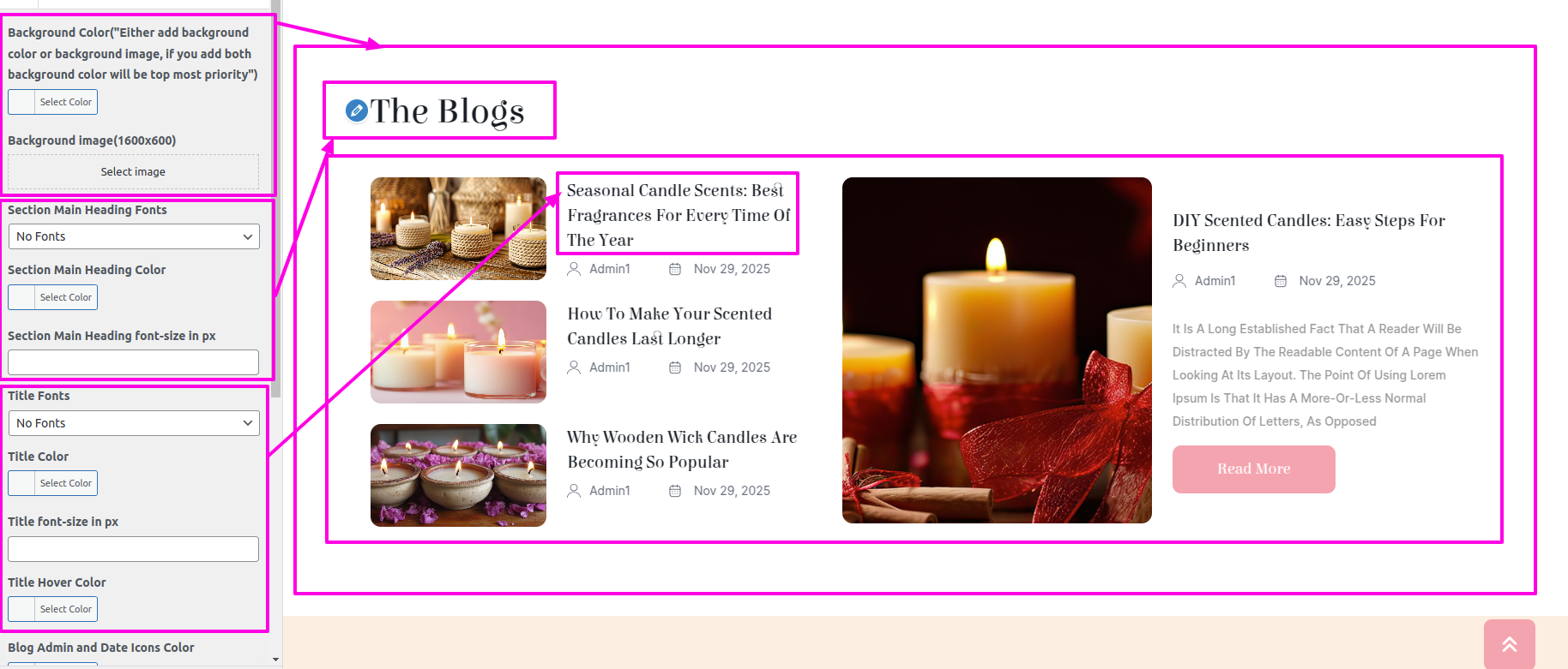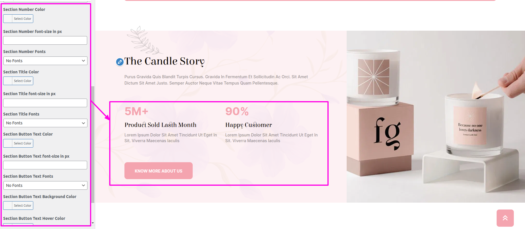 Select The Appearance → Select The Customize → Theme Settings → Scented Candles Photo → Style Settings