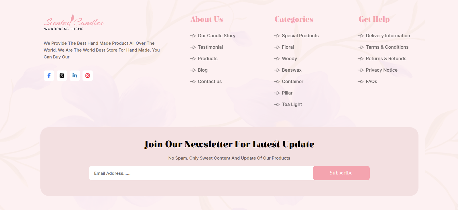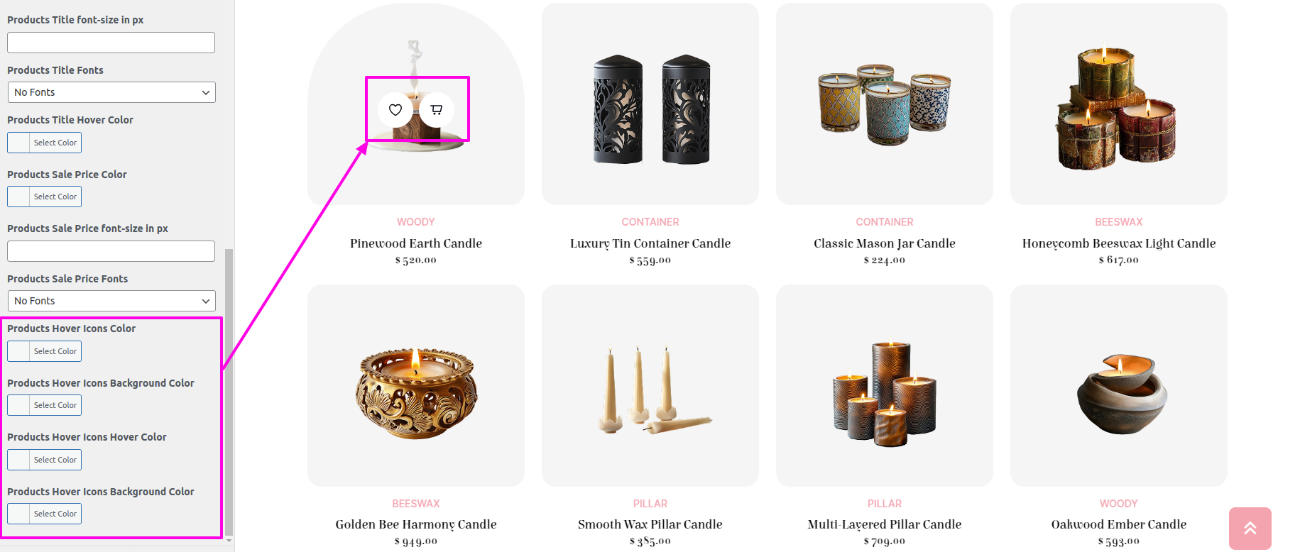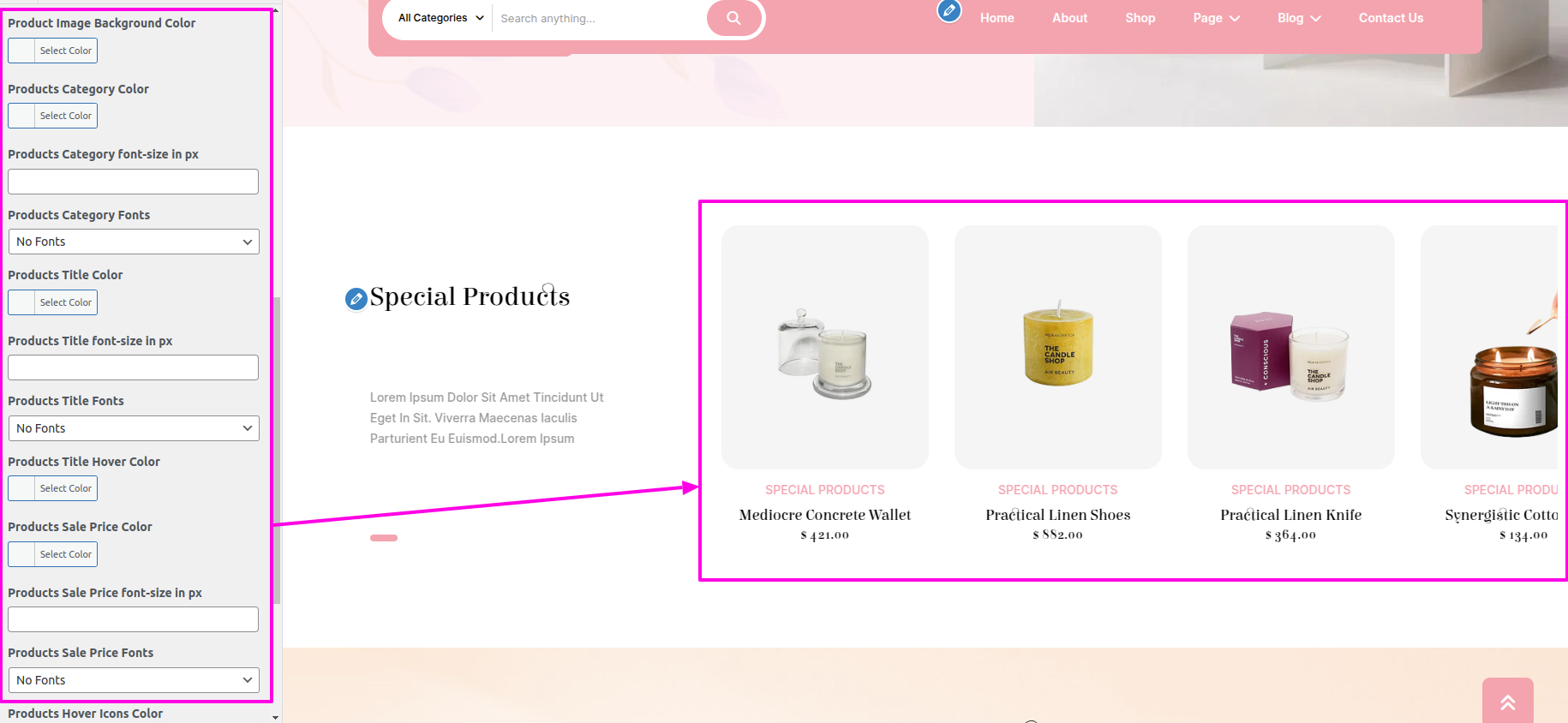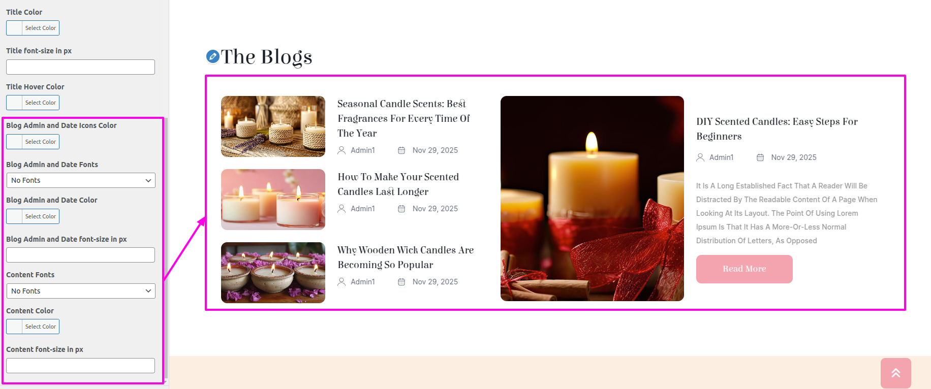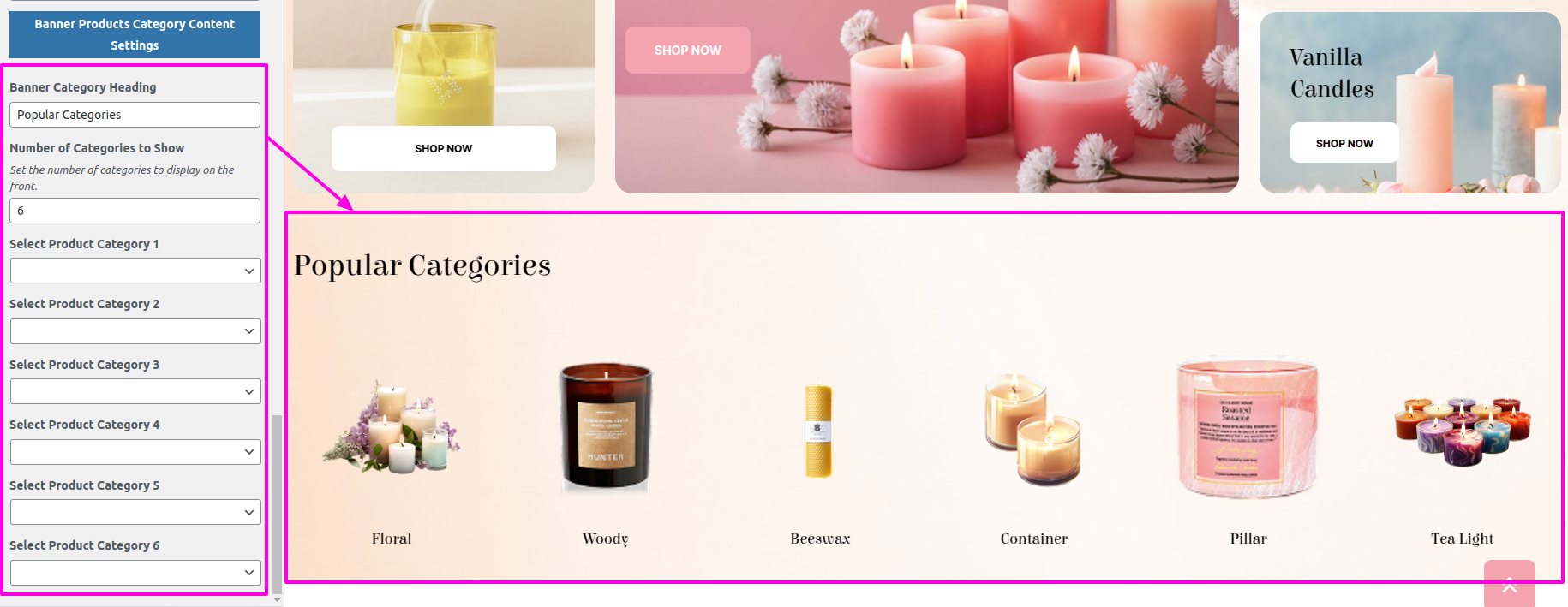 Select The Appearance → Select The Customize → Theme Settings → Scented Candles Photo → Style Settings