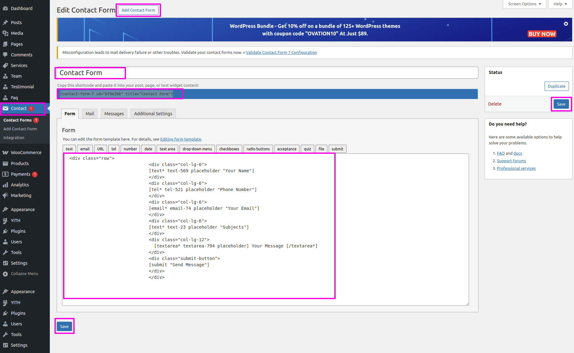 To start Configuring the Contact Page on your WordPress site, we need to install contact forn 7 plugin. contact options will appear once you install the plugin