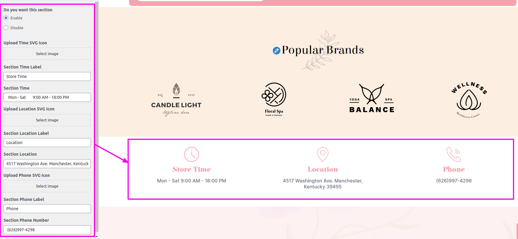 SelectThe Appearance → Select The Customize → Theme Settings → Contact Page → Text and Iocon Settings