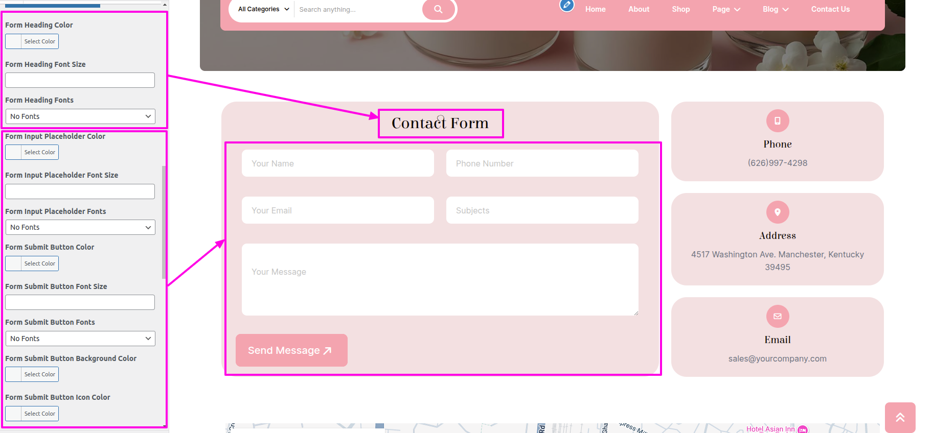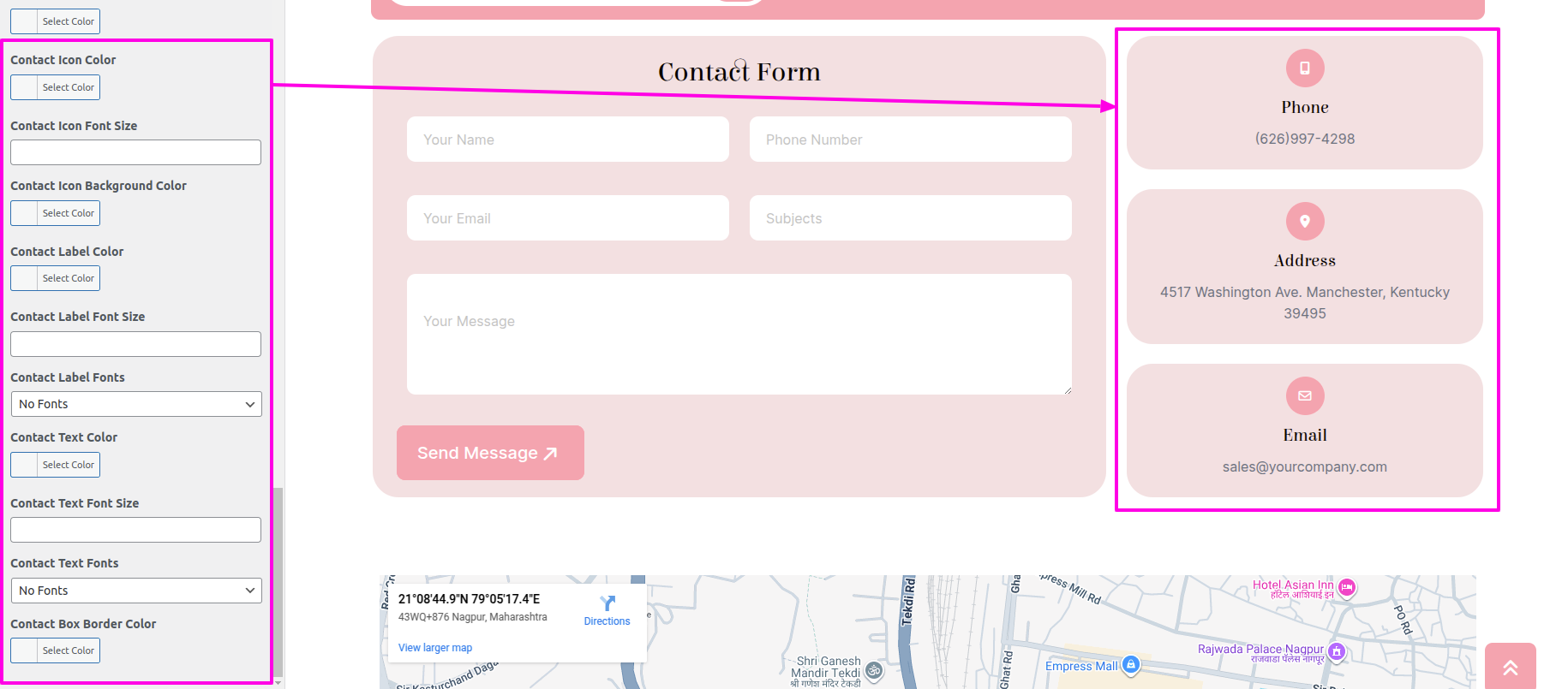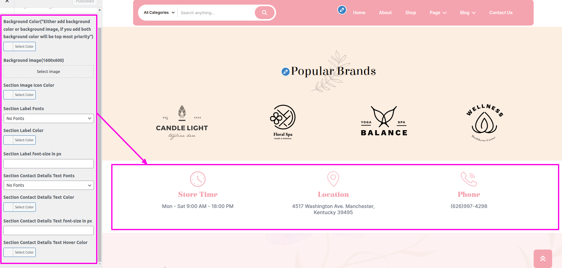 Select The Appearance → Select The Customize → Theme Settings → Contact Details → Style Settings