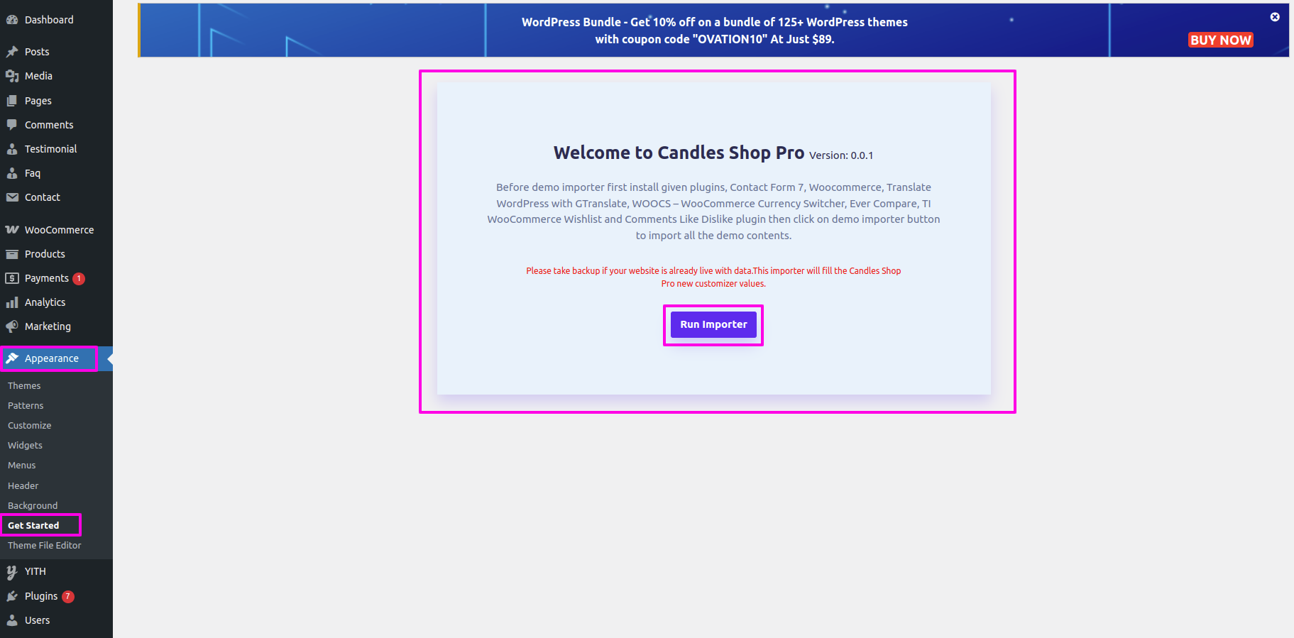 Import demonstration content with one click to get your theme Set-up. This content will lead you through creating your website.