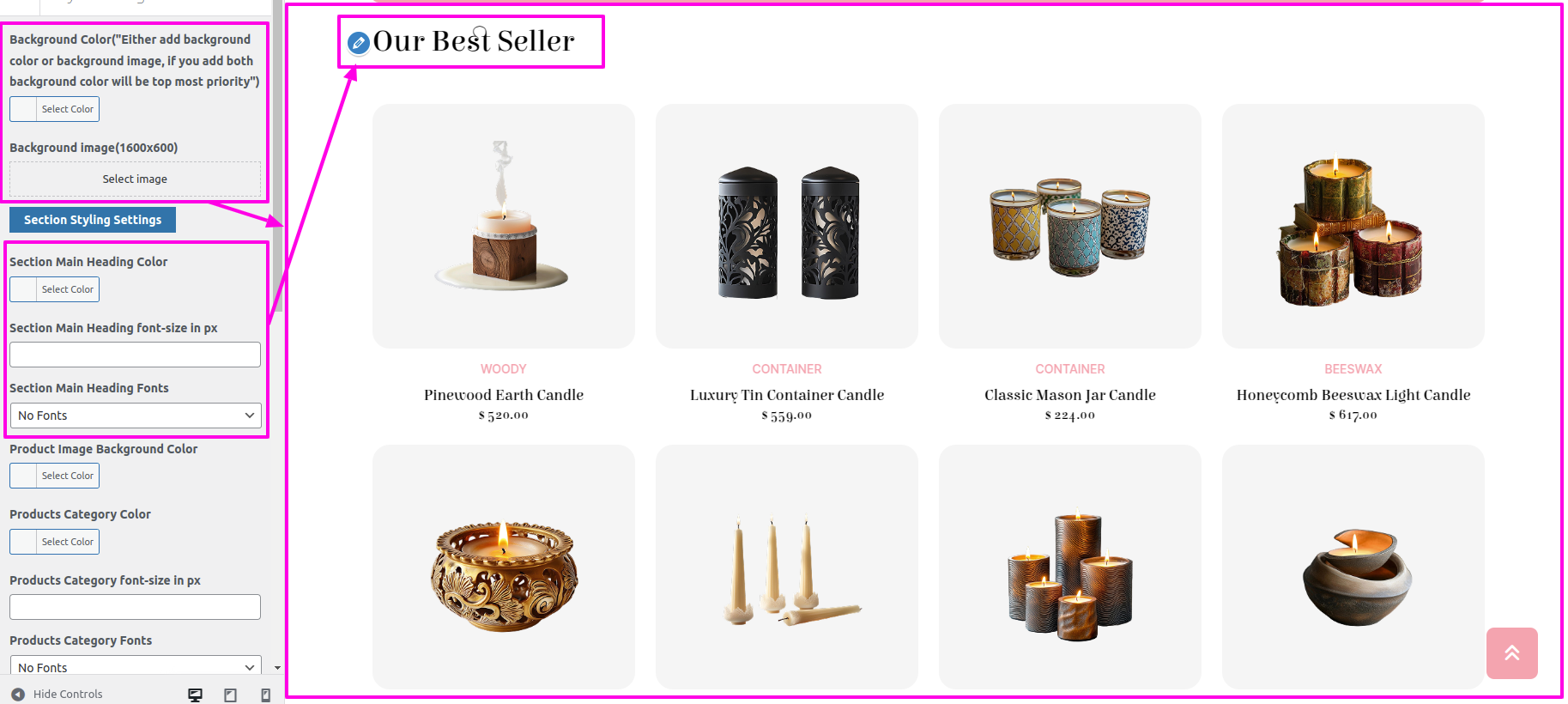 Select The Appearance → Select The Customize → Theme Settings → Our Best Seller → Style Settings