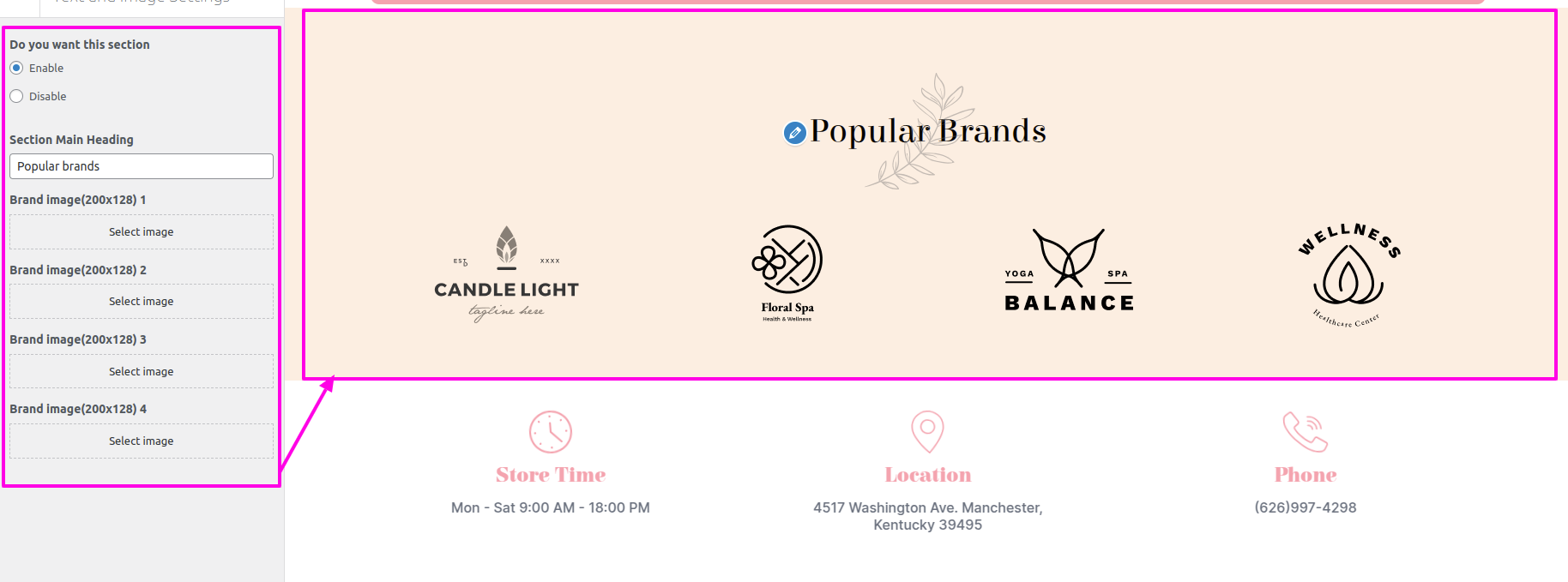 Select The Appearance → Select The Customize → Theme Settings → Popular Brands → Style Settings