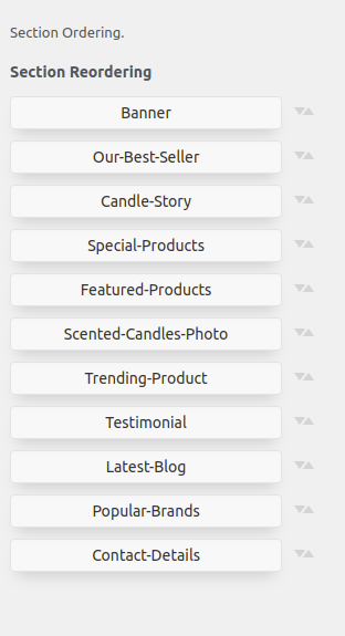 Section reordering means to arranage the section as per our requirement. first you need to choose section and drag section on top or bottom where you need it. when you will drap any section your front view will change according to your choice.