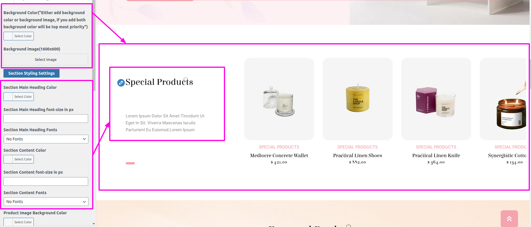 Select The Appearance → Select The Customize → Theme Settings → Featured Products → Style Settings