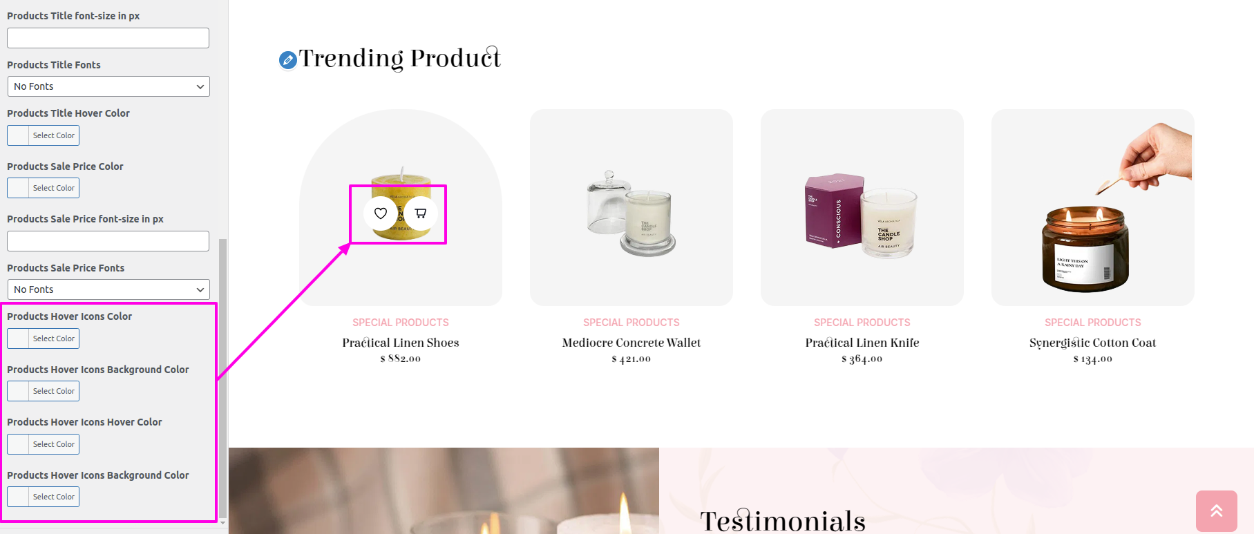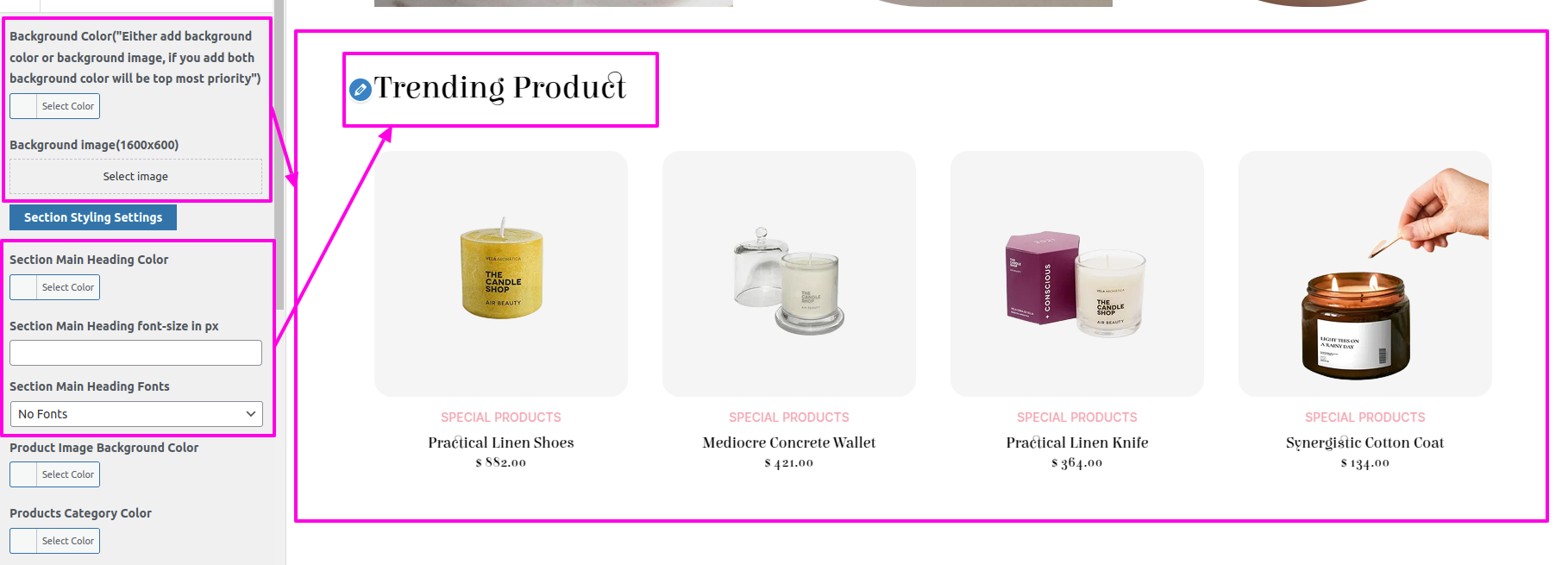 Select The Appearance → Select The Customize → Theme Settings → Trending Product → Style Settings
