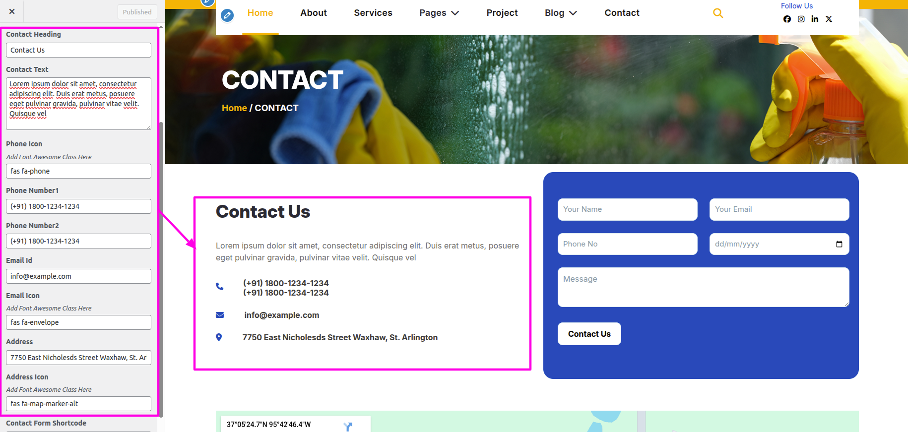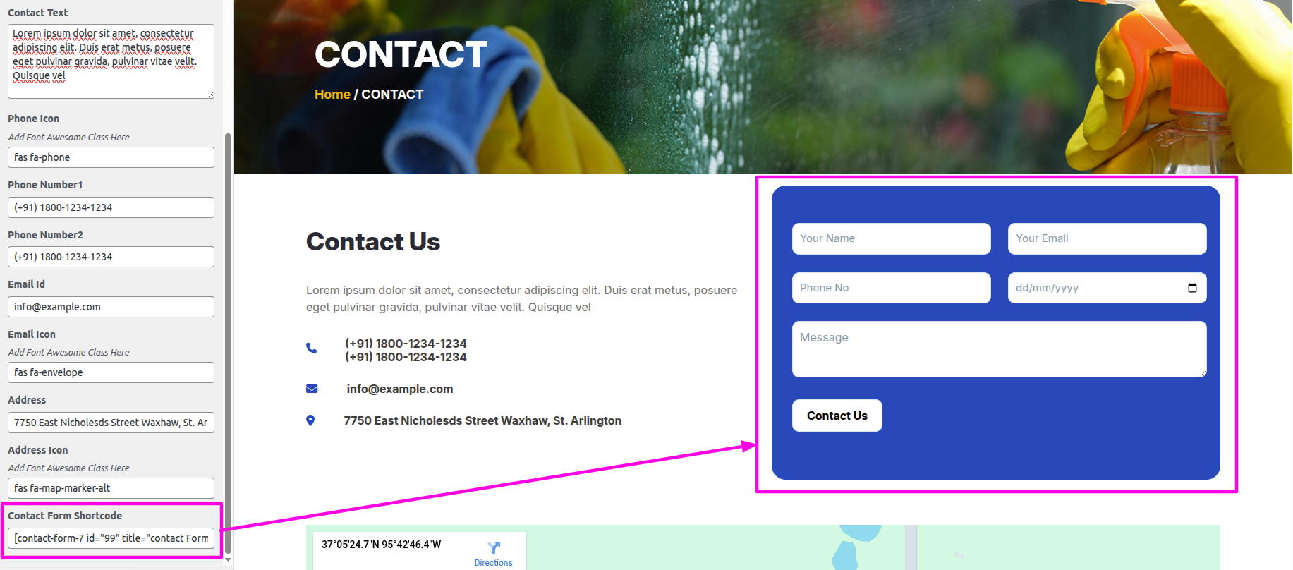 SelectThe Appearance → Select The Customize → Theme Settings → Contact Page → Text and Iocon Settings