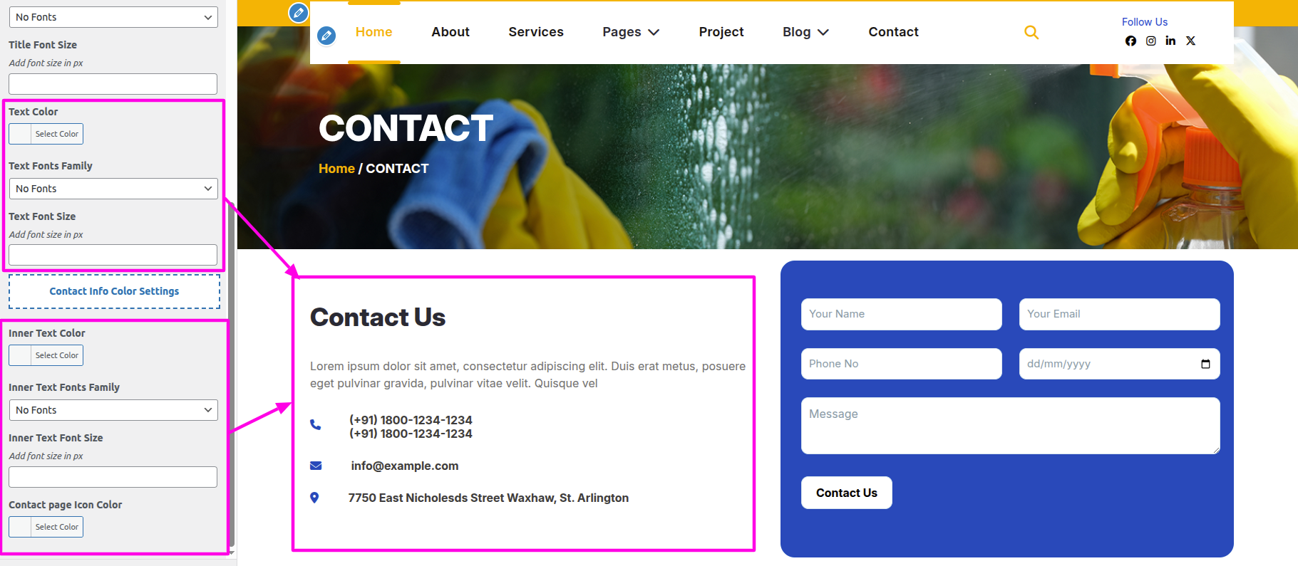 Select The Appearance → Select The Customize → Theme Settings → Home Contact → Color Settings