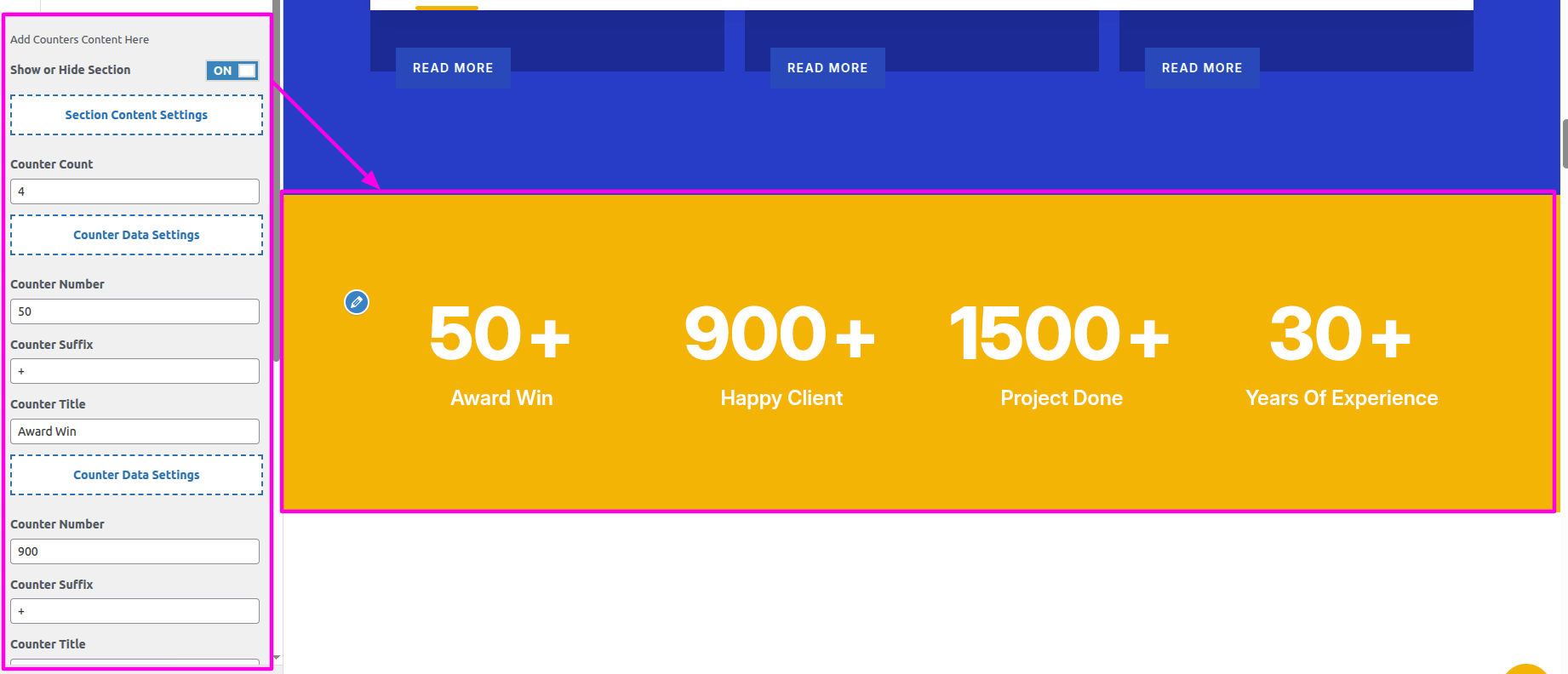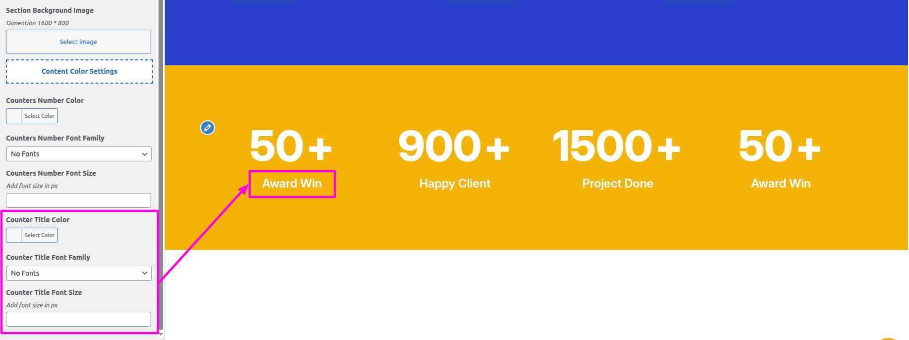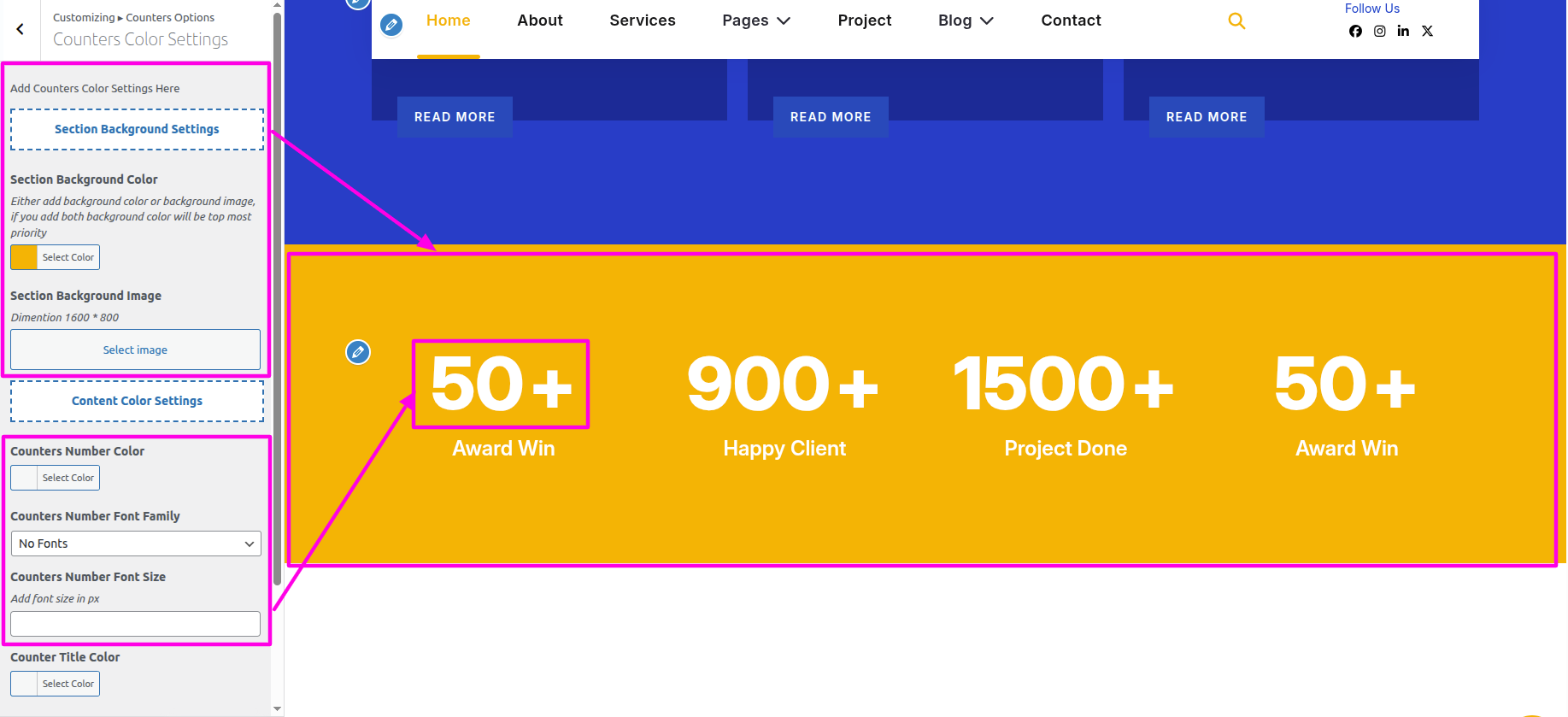 Select The Appearance → Select The Customize → Theme Settings → Counters → Settings