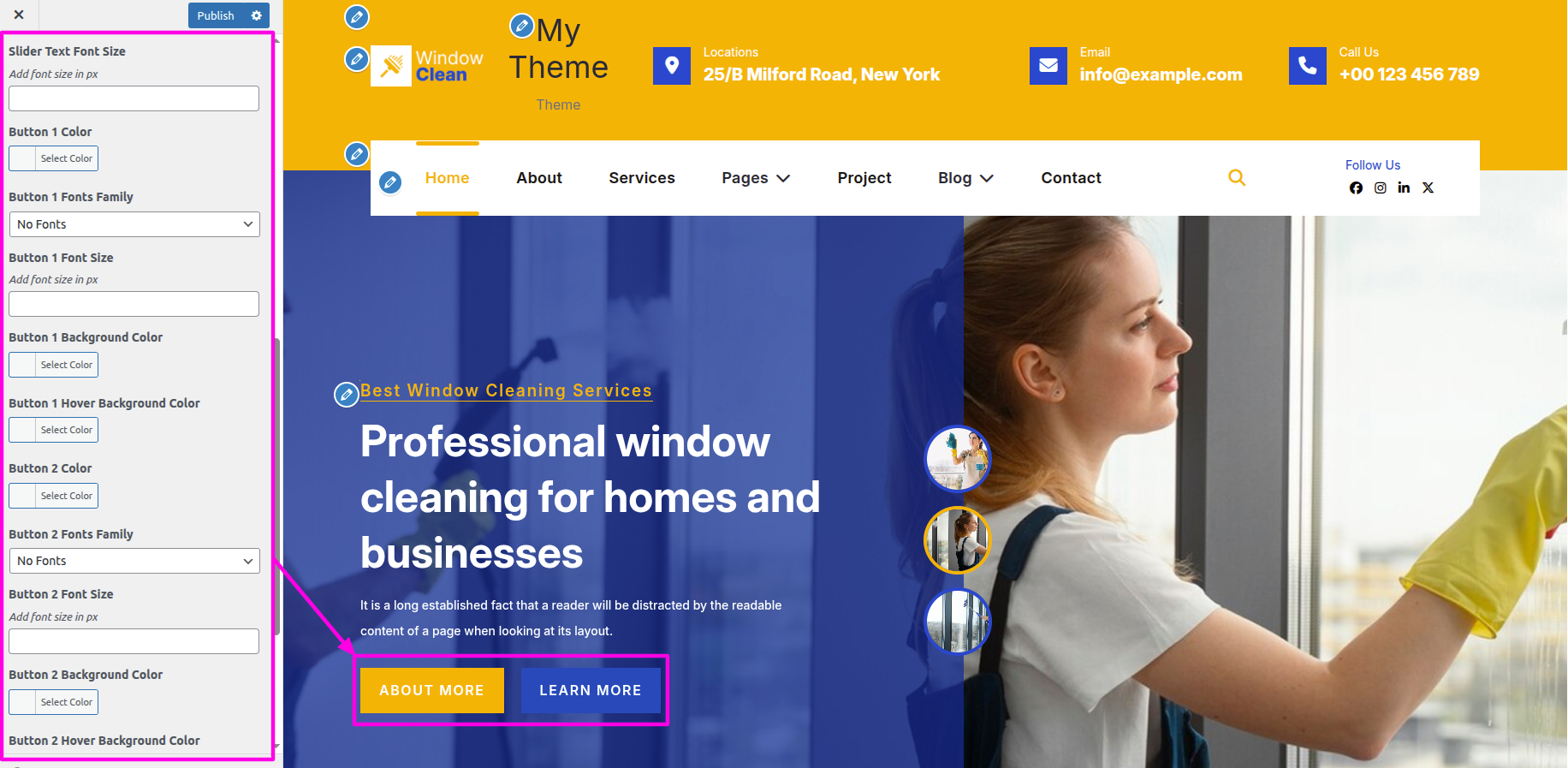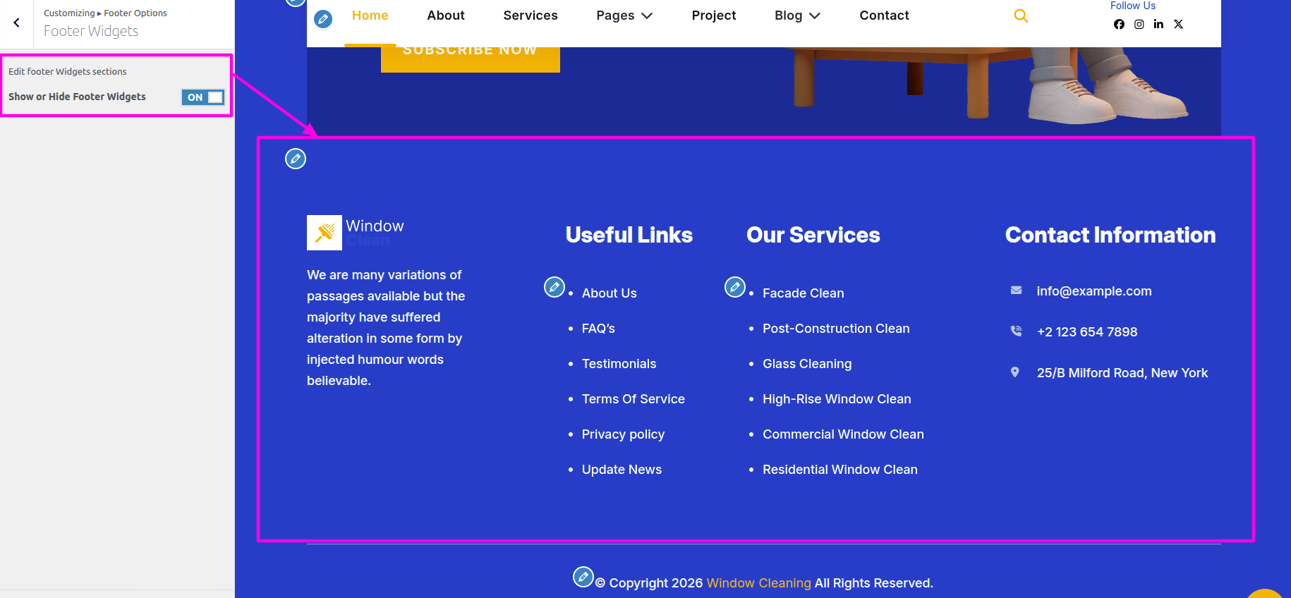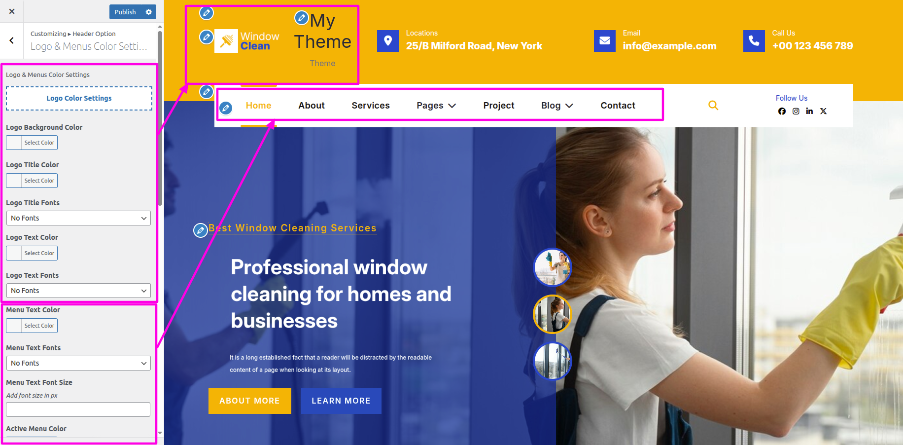 Select The Appearance → Select The Customize → Theme Settings → About → Options