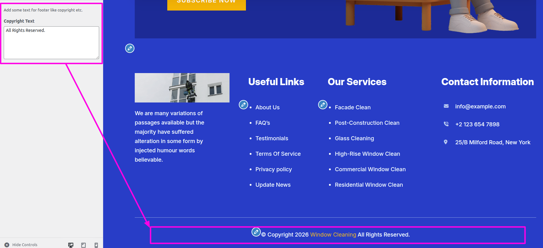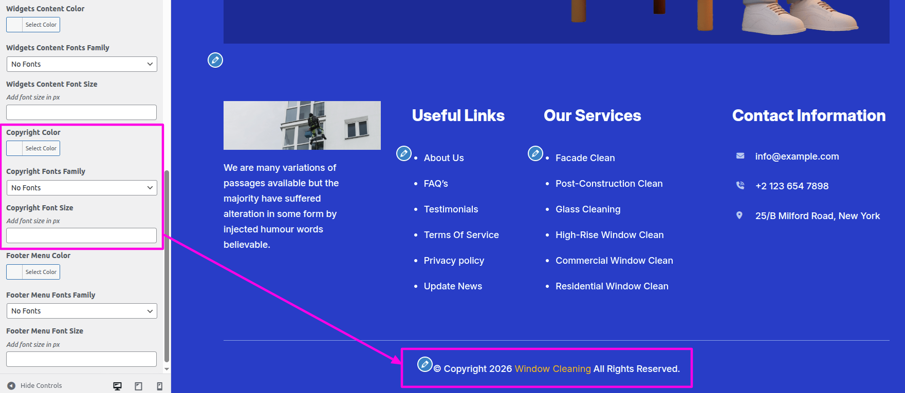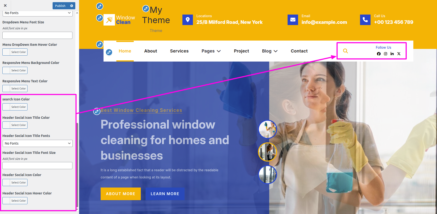 Select The Appearance → Select The Customize → Theme Settings → About → Options