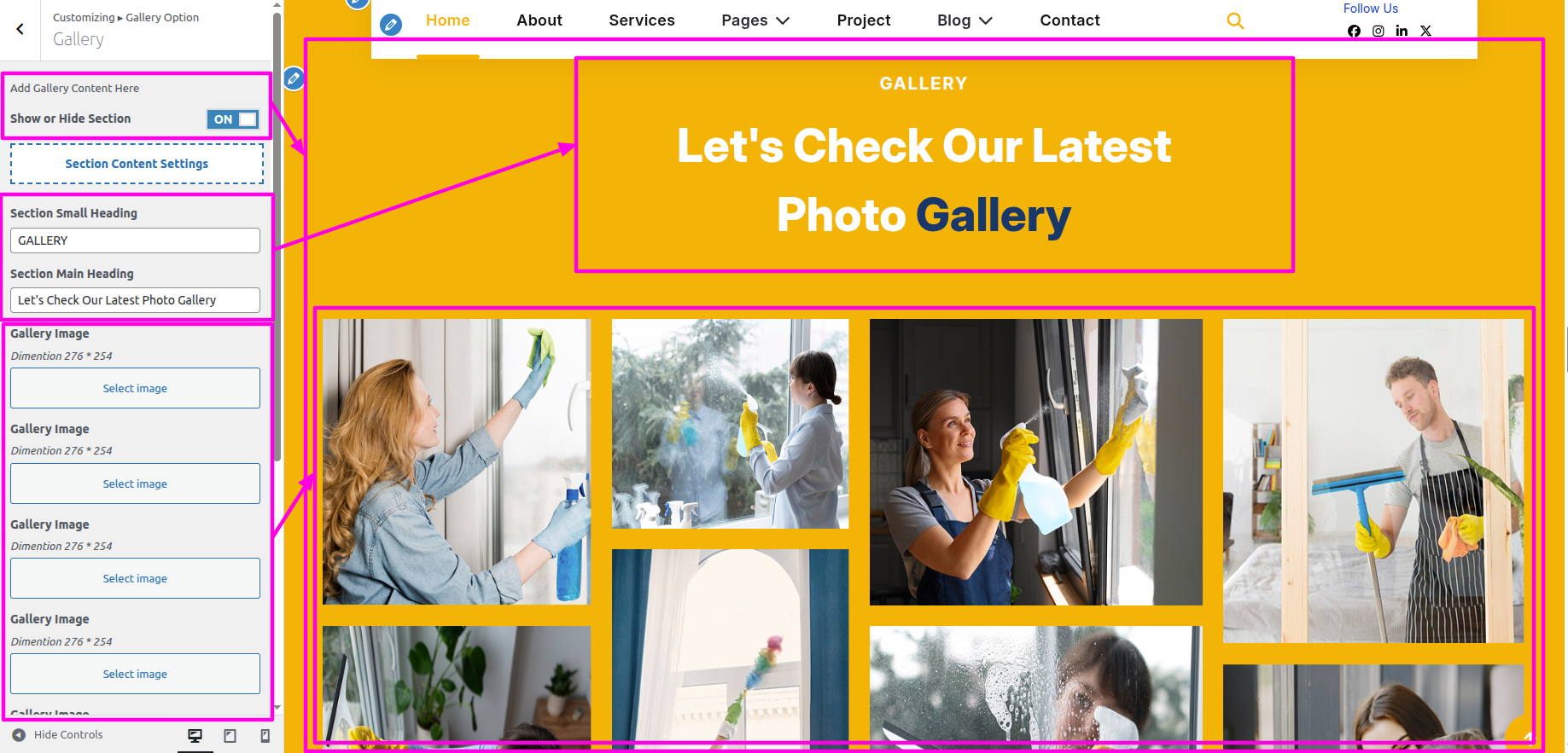 Select The Appearance → Select The Customize → Theme Settings → Gallery → Settings
