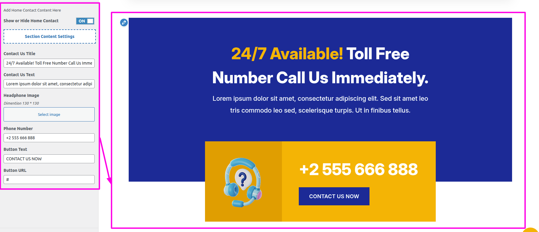 Select The Appearance → Select The Customize → Theme Settings → Home Contact → Settings
