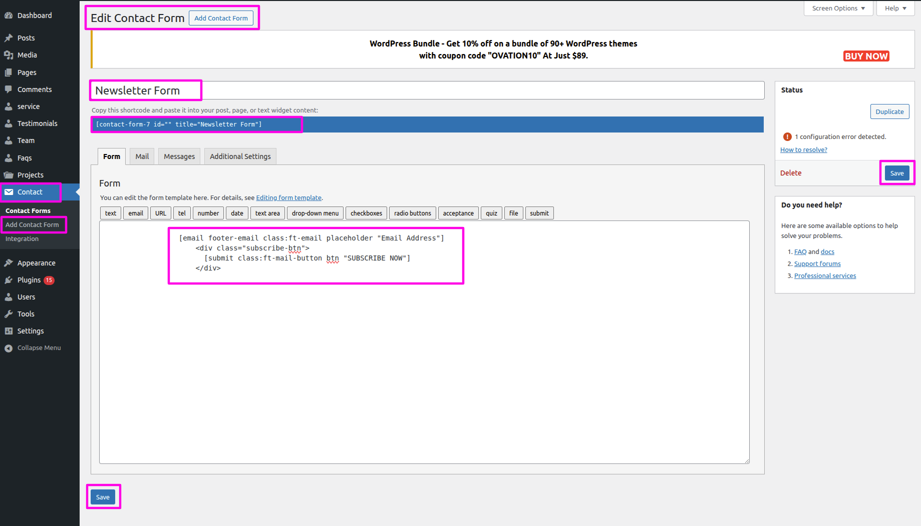 To start Configuring the Contact Page on your WordPress site, we need to install contact forn 7 plugin. contact options will appear once you install the plugin