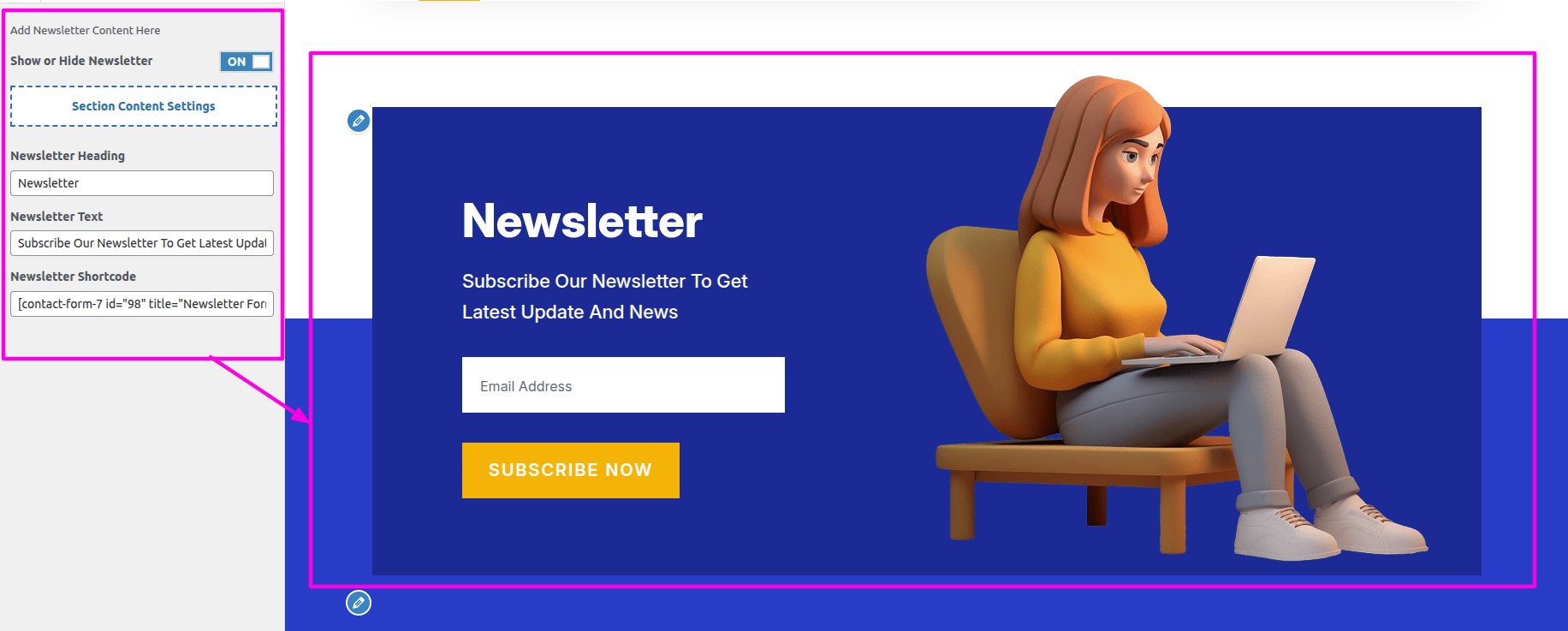 Select The Appearance → Select The Customize → Theme Settings → Newsletter → Settings