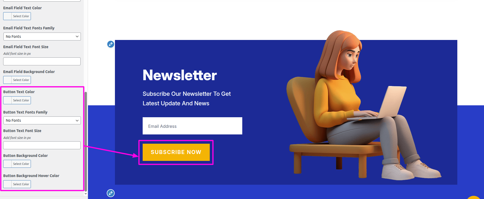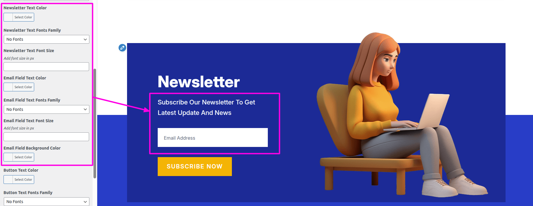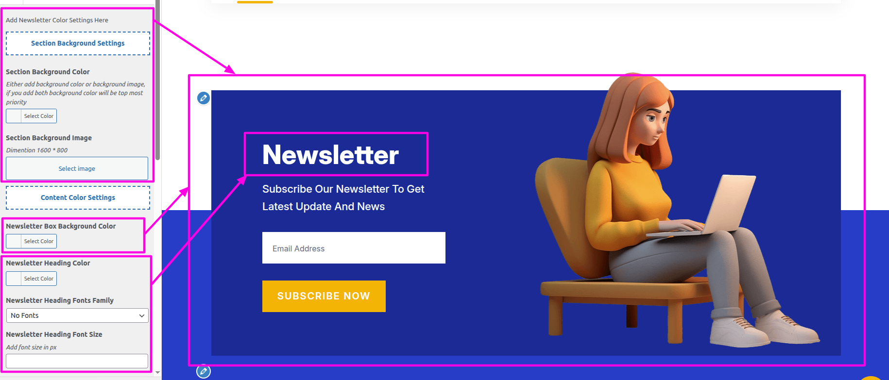 Select The Appearance → Select The Customize → Theme Settings → Newsletter → Color Settings