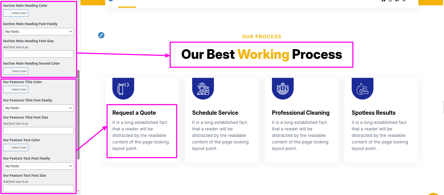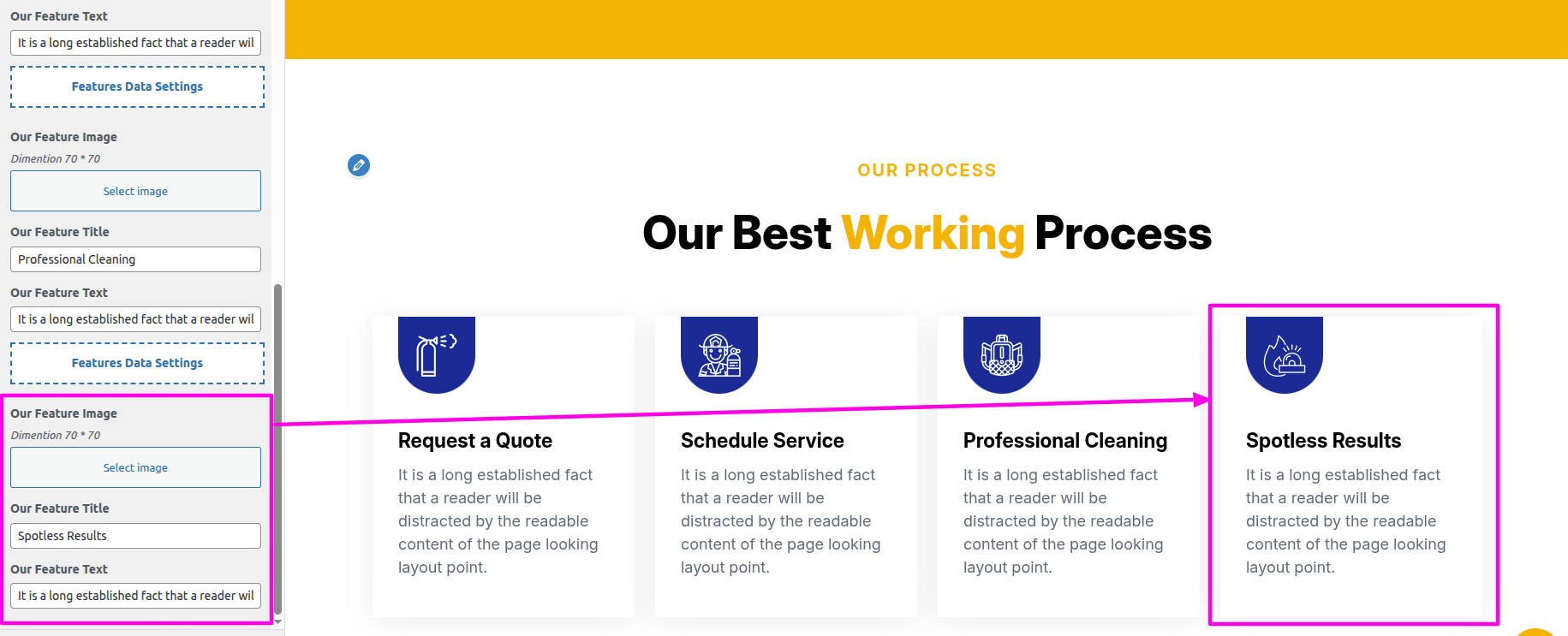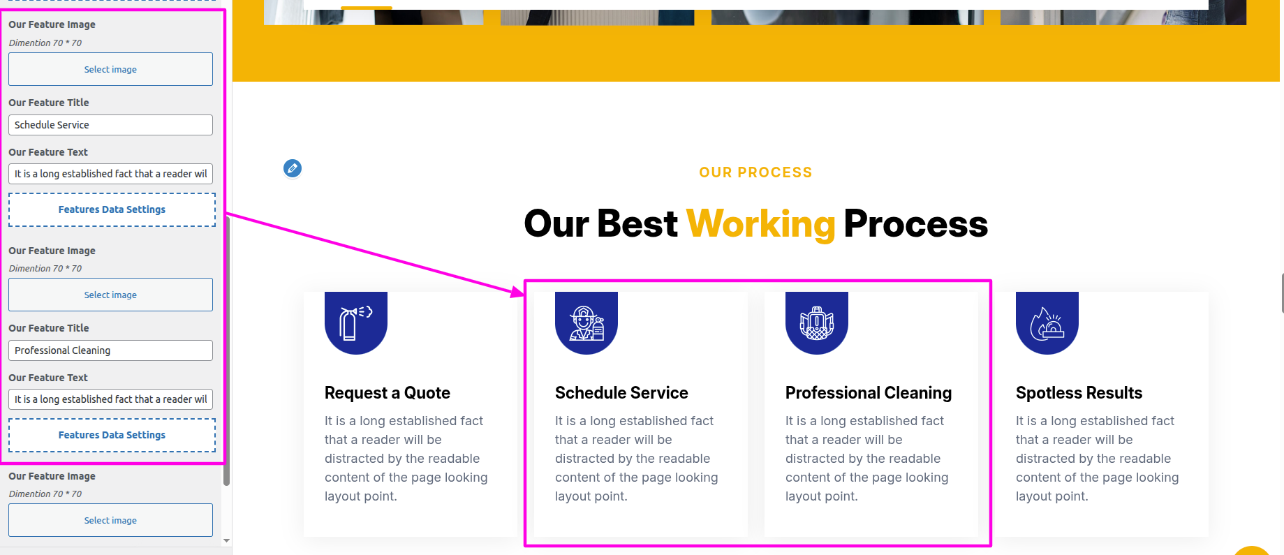 Select The Appearance → Select The Customize → Theme Settings → Our Process → Settings