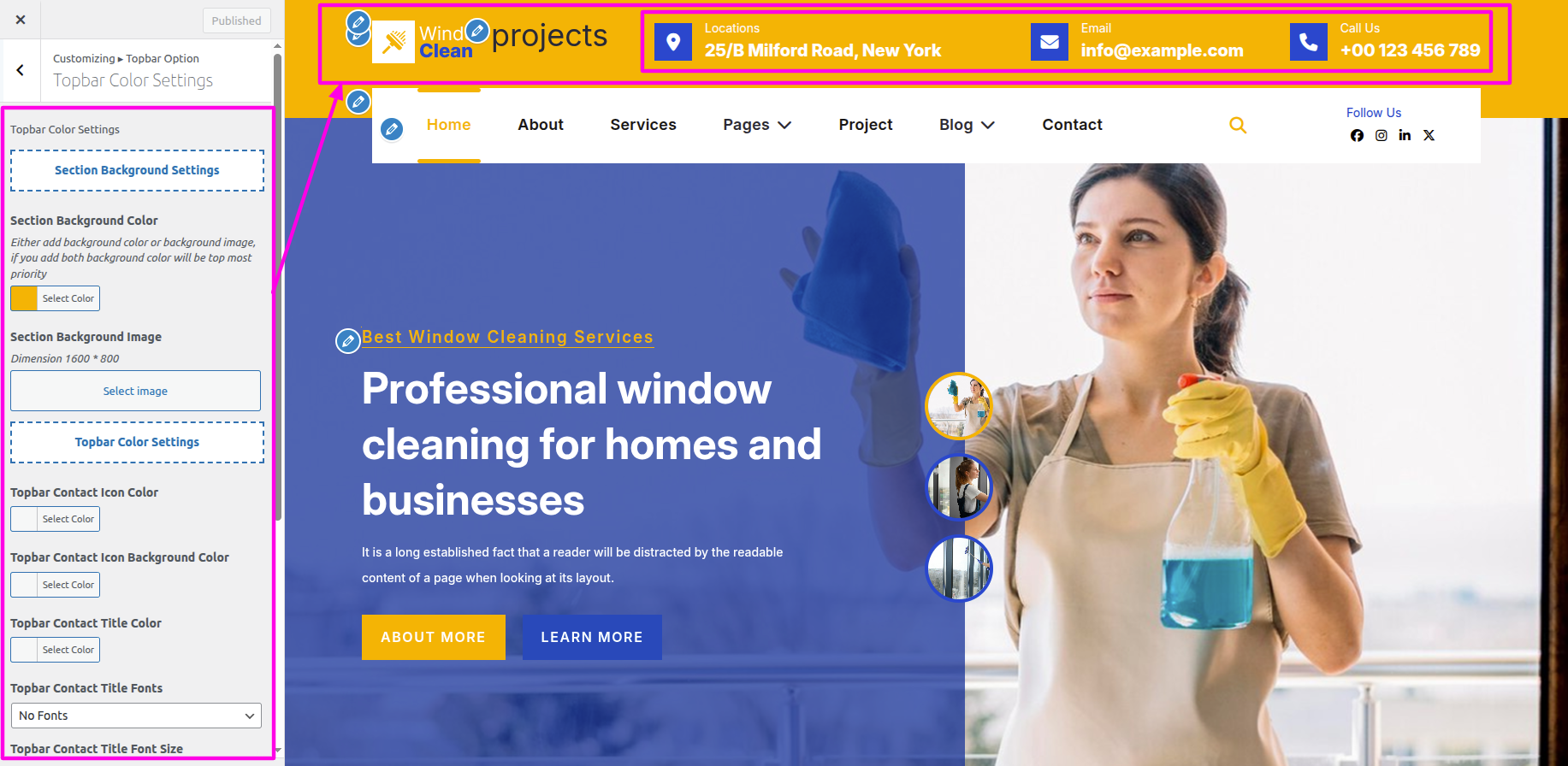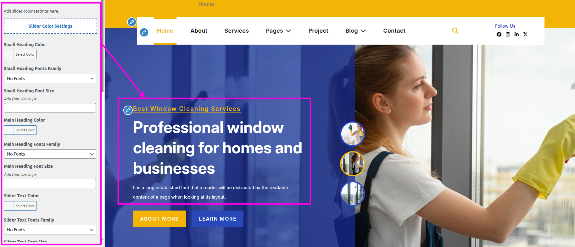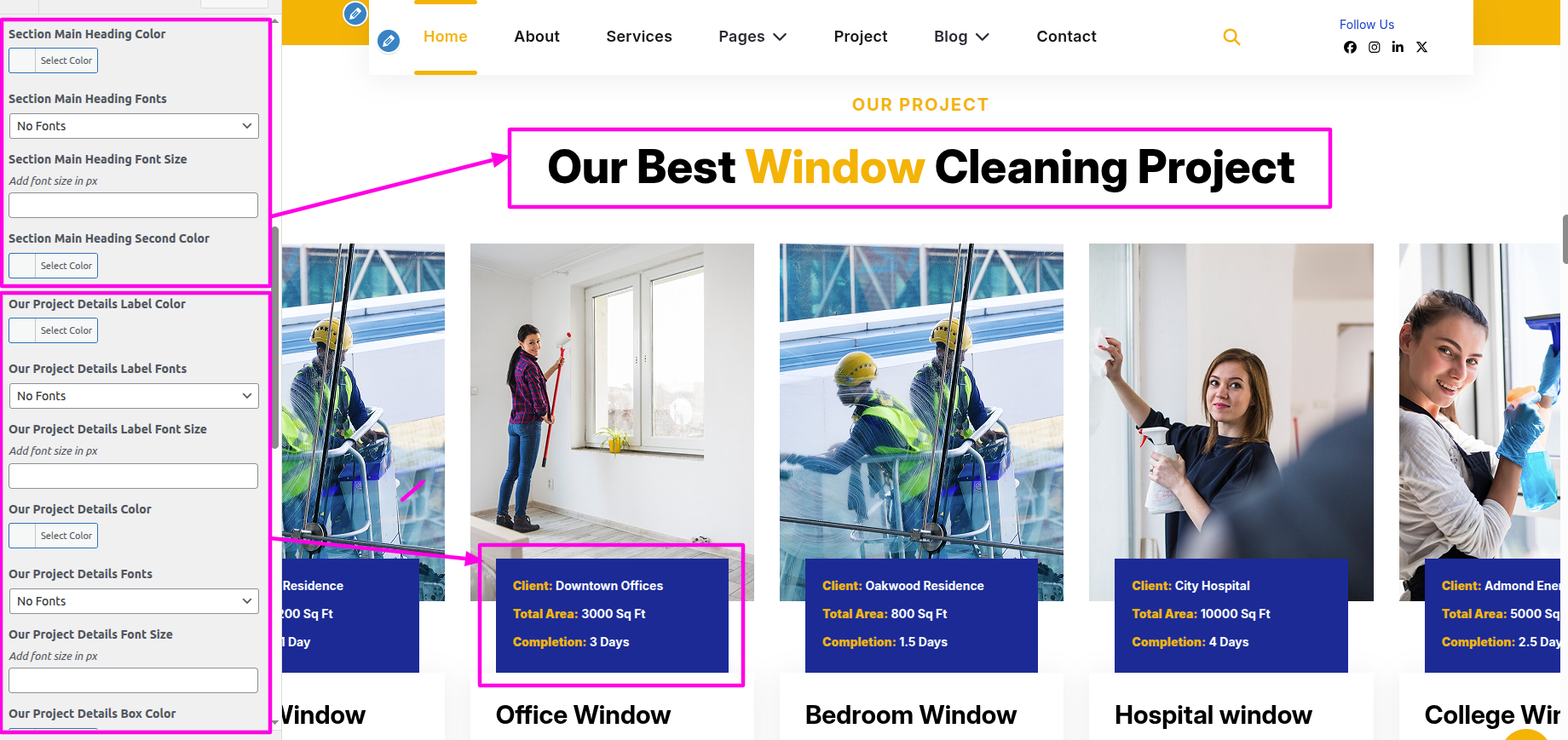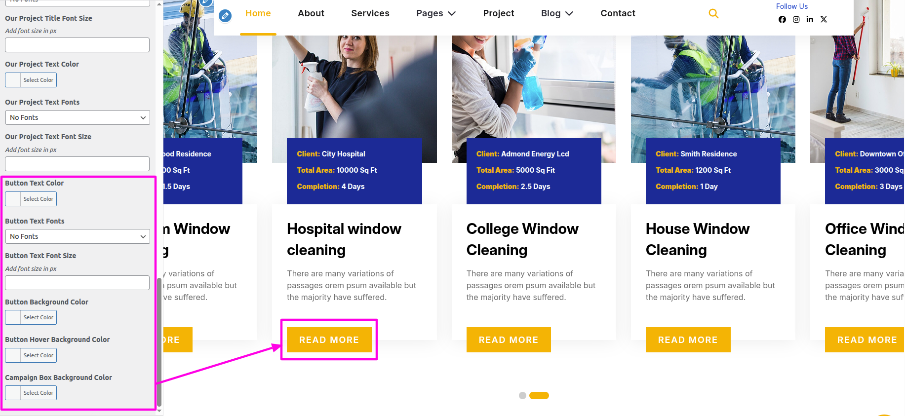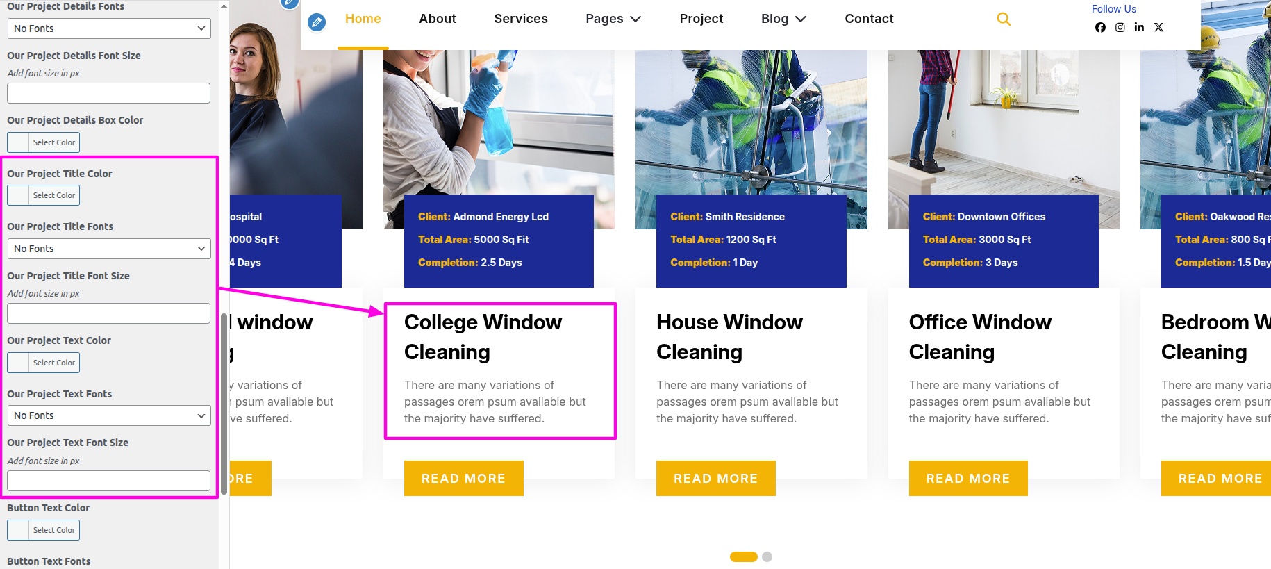 Select The Appearance → Select The Customize → Theme Settings → Our Project → Settings