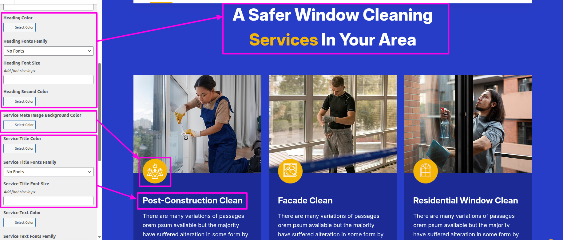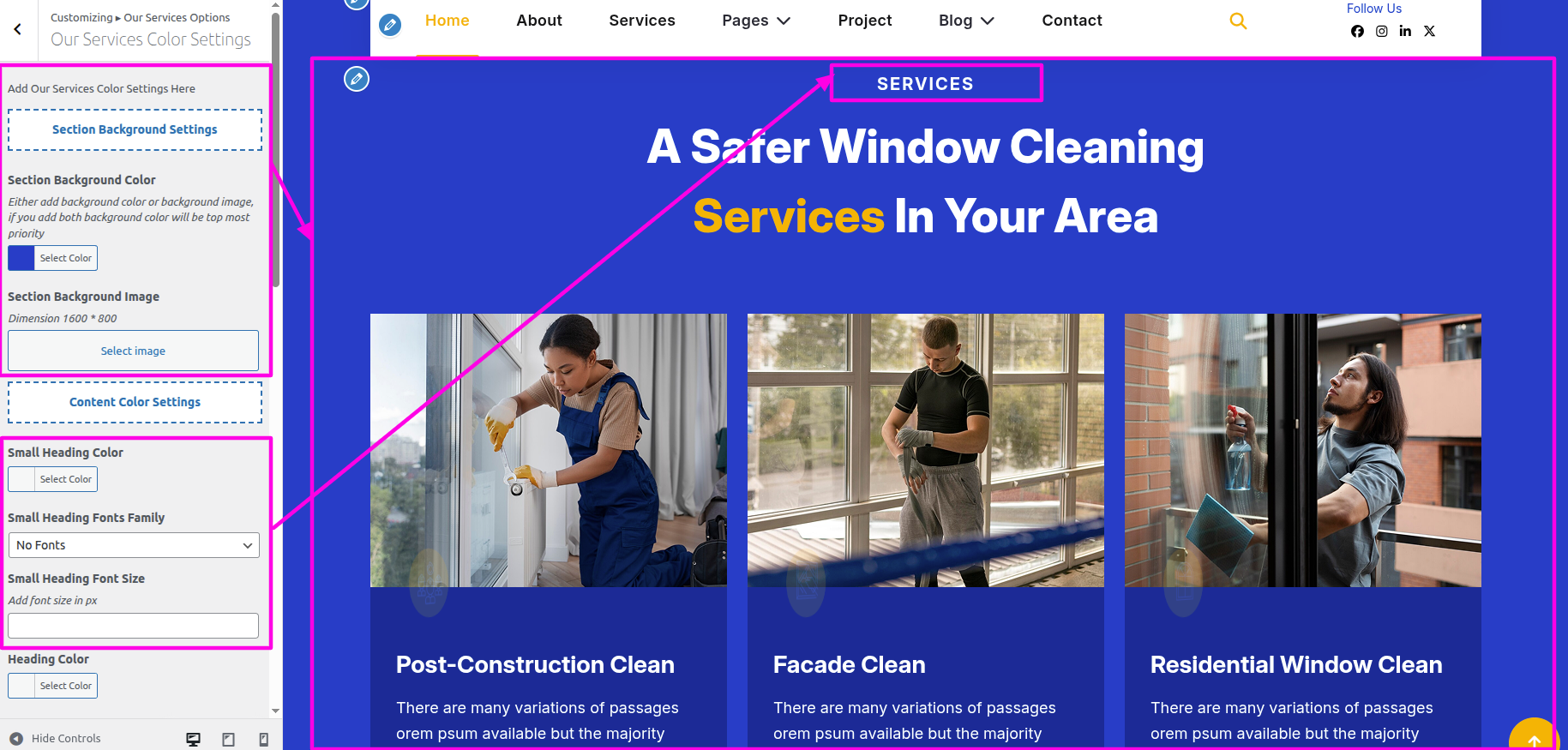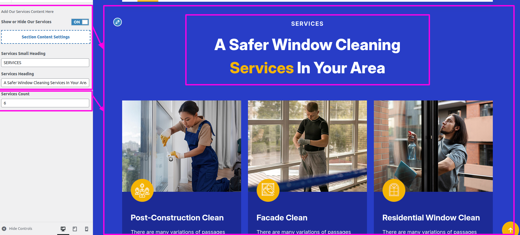 The Our Services must be established on your WordPress website first.