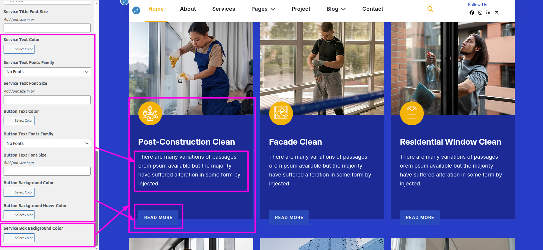 Select The Appearance → Select The Customize → Theme Settings → Our Services→ Style Settings