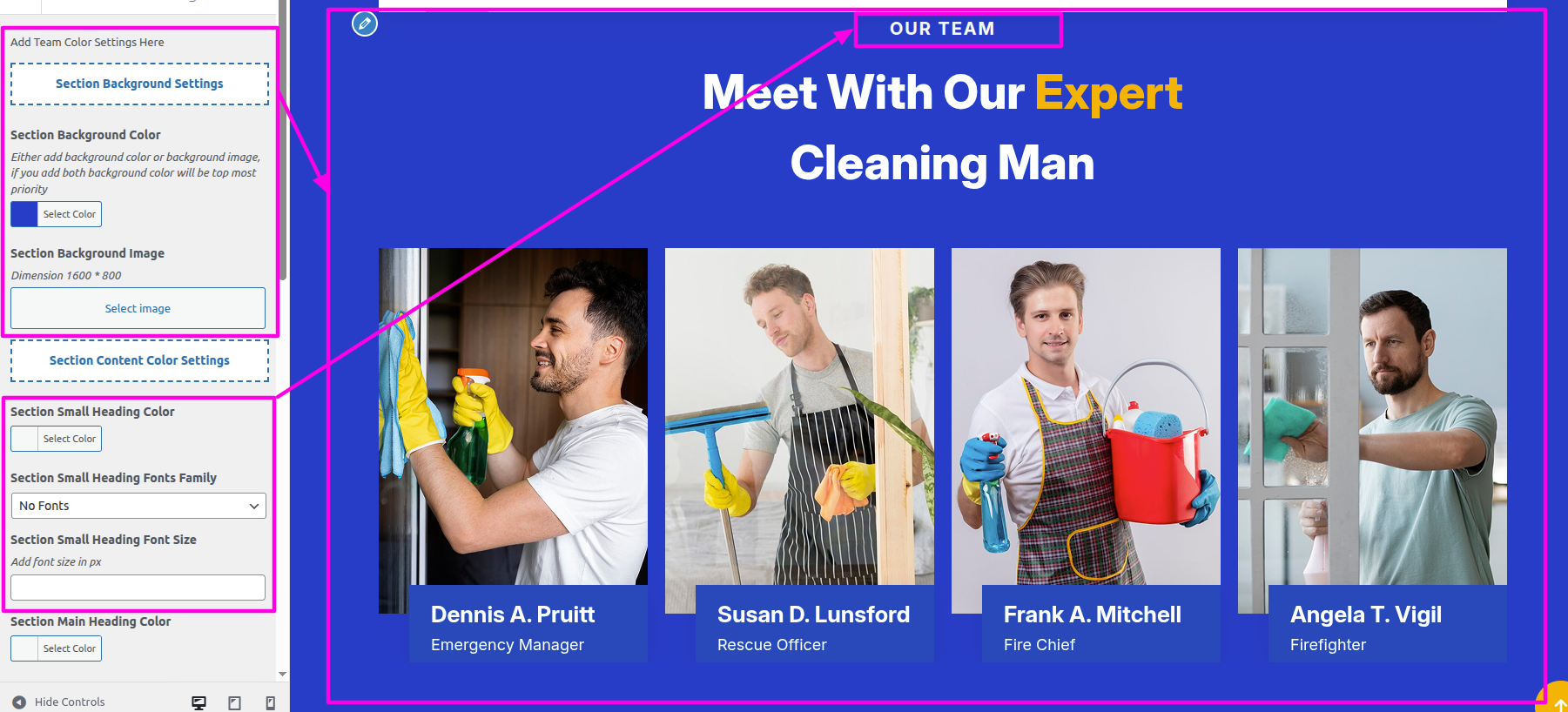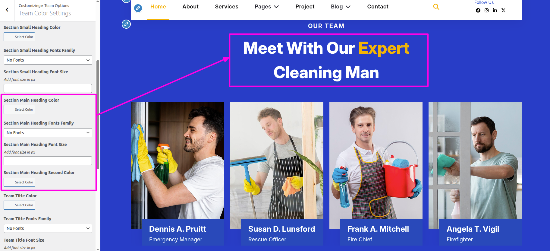 Select The Appearance → Select The Customize → Theme Settings → Team → Settings