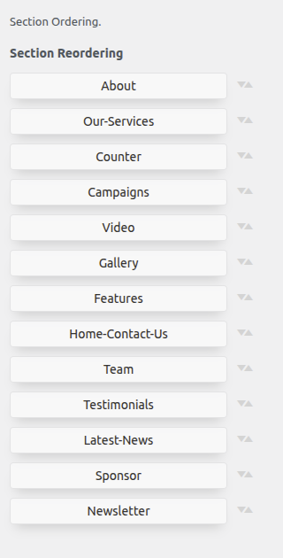 Section reordering means to arranage the section as per our requirement. first you need to choose section and drag section on top or bottom where you need it. when you will drap any section your front view will change according to your choice.