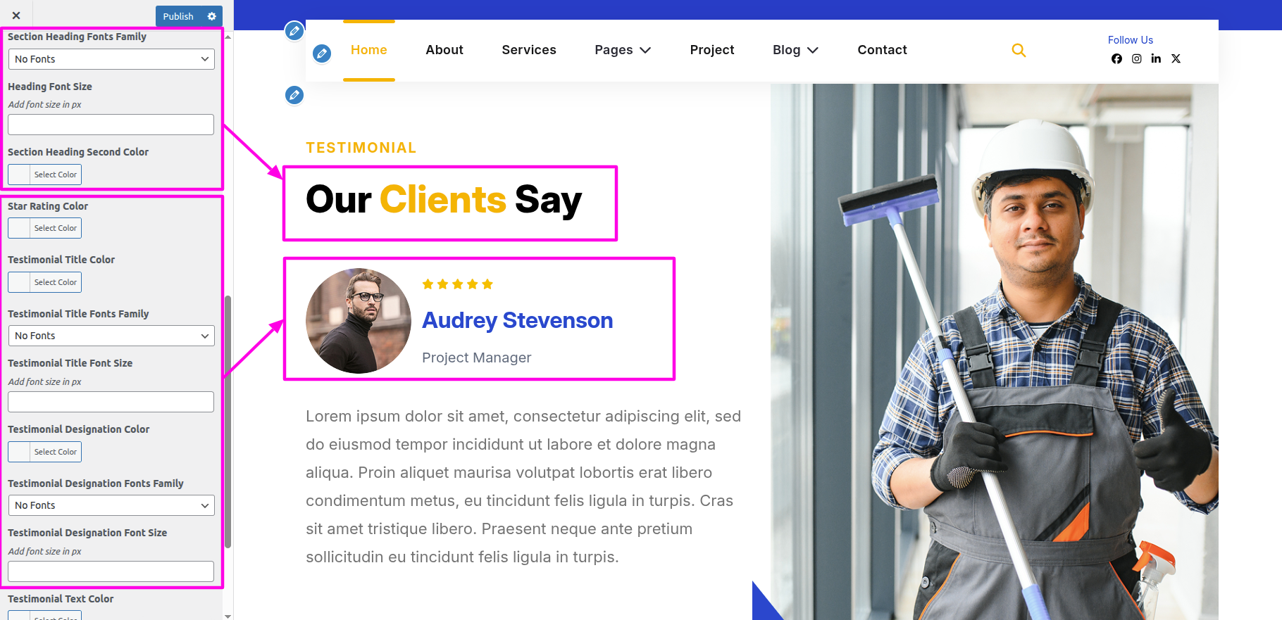 Select The Appearance → Select The Customize → Theme Settings → Testimonial→ Style Settings