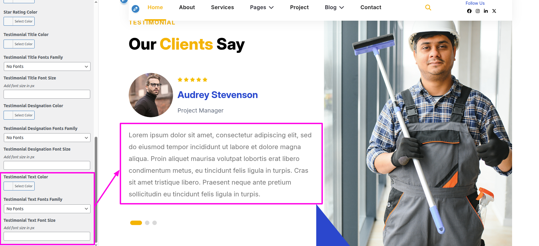 Select The Appearance → Select The Customize → Theme Settings → Testimonial→ Text Settings
