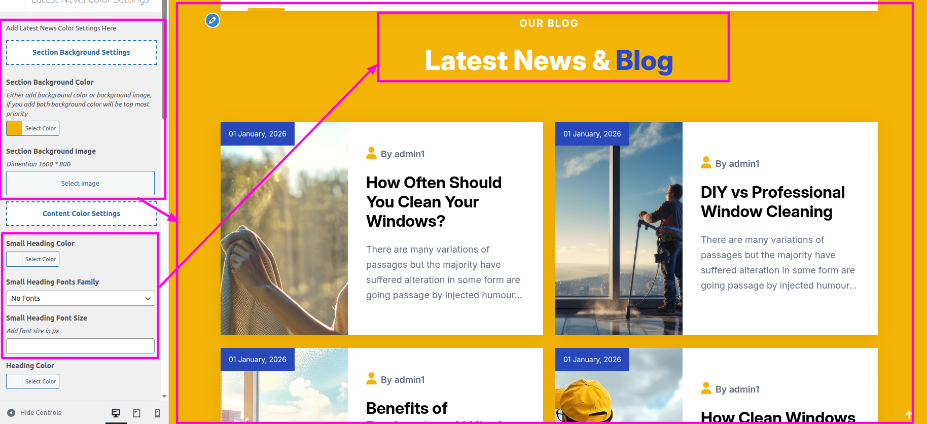 Select The Appearance → Select The Customize → Theme Settings → Our Blog → Text and Image Settings