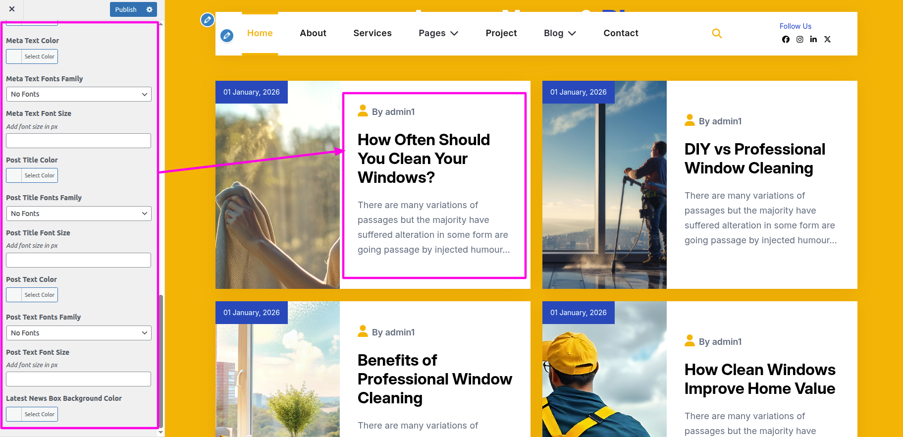 Installing and activating the Window Cleaning Pro Custom Posttype /strong> Plugin is required for the Post section. The dashboard's Post section will show up after activation.