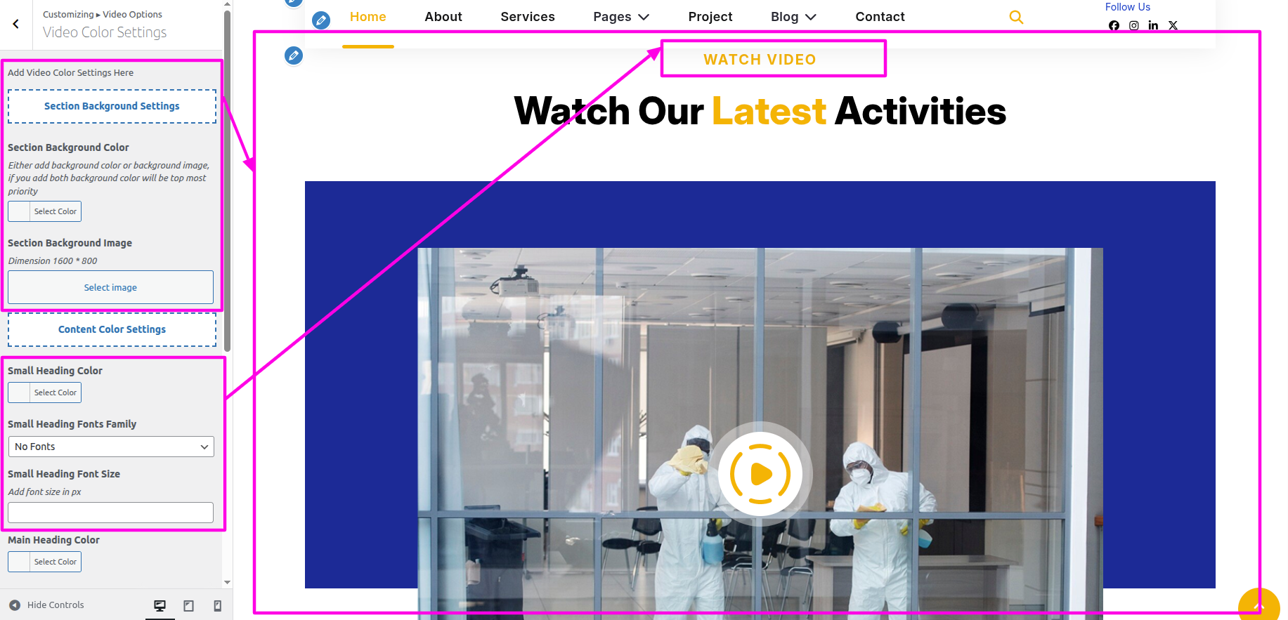 Select The Appearance → Select The Customize → Theme Settings → Video → Color Settings