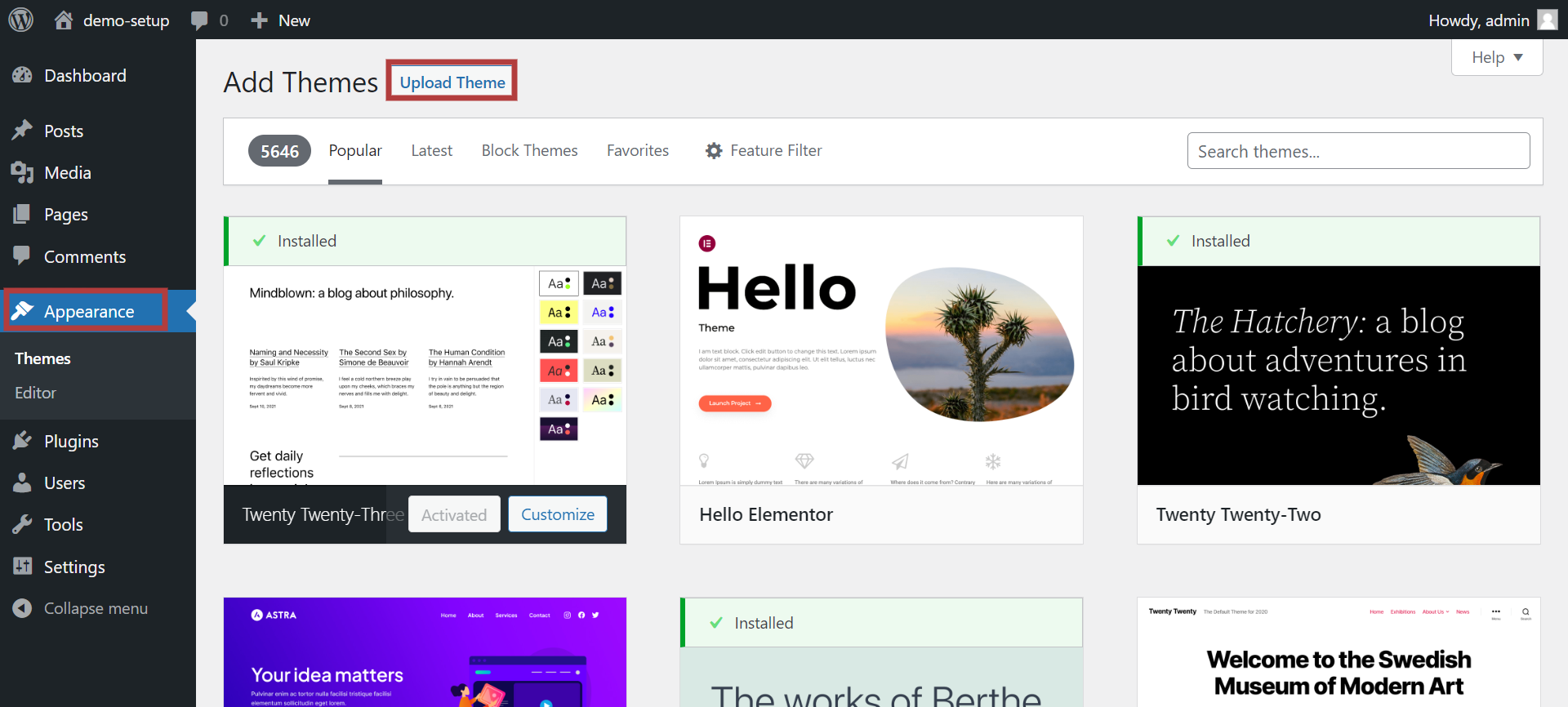 The next choice is to upload the theme using FTP. To employ this technique, first Access your website using an FTP connection, then go to the wp-content/themes folder. Then, unzip the downloaded theme, extract the file, and upload it to your server.