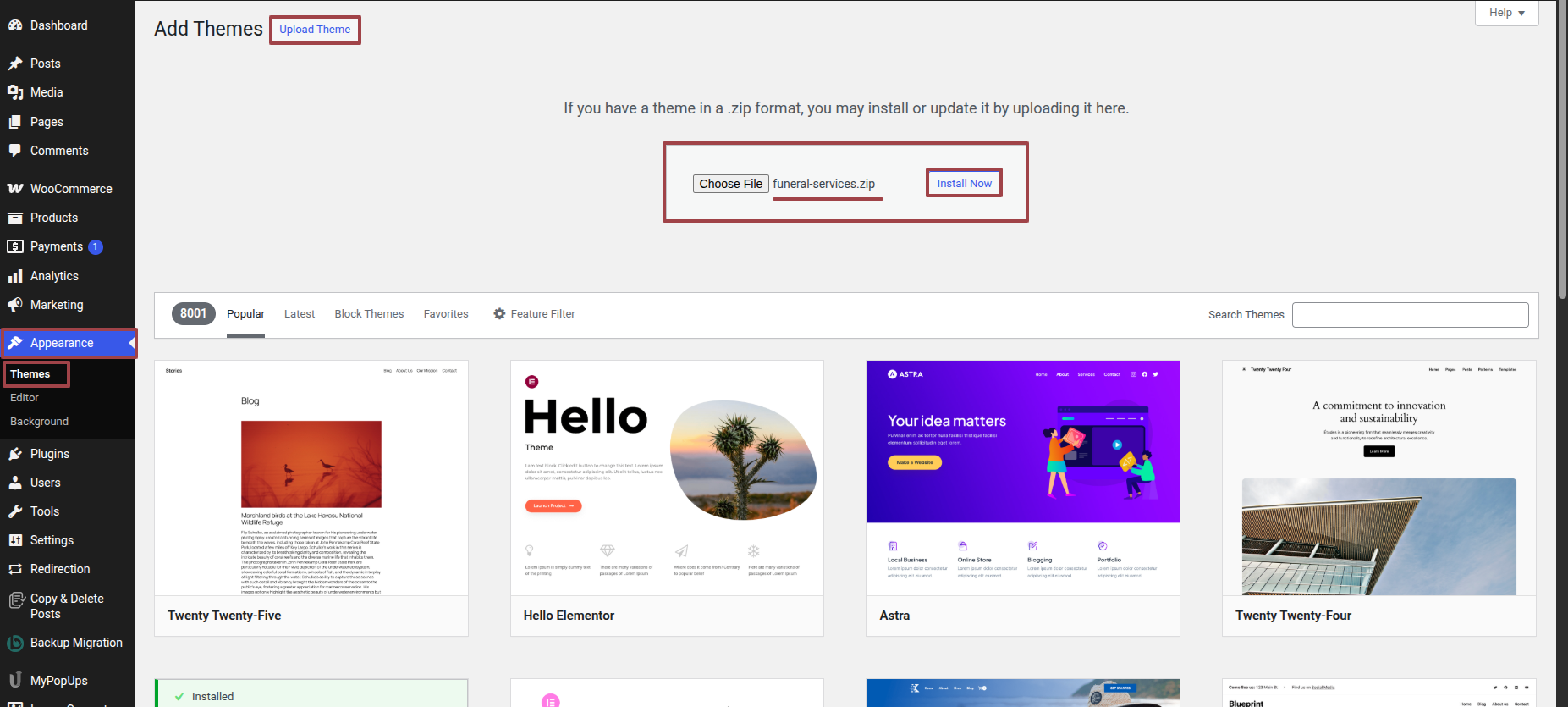 Extract the zipped package downloaded from Wordpress.org to your desktop, in the extracted package you will find the "funeral-services.zip" file which is the WordPress theme.