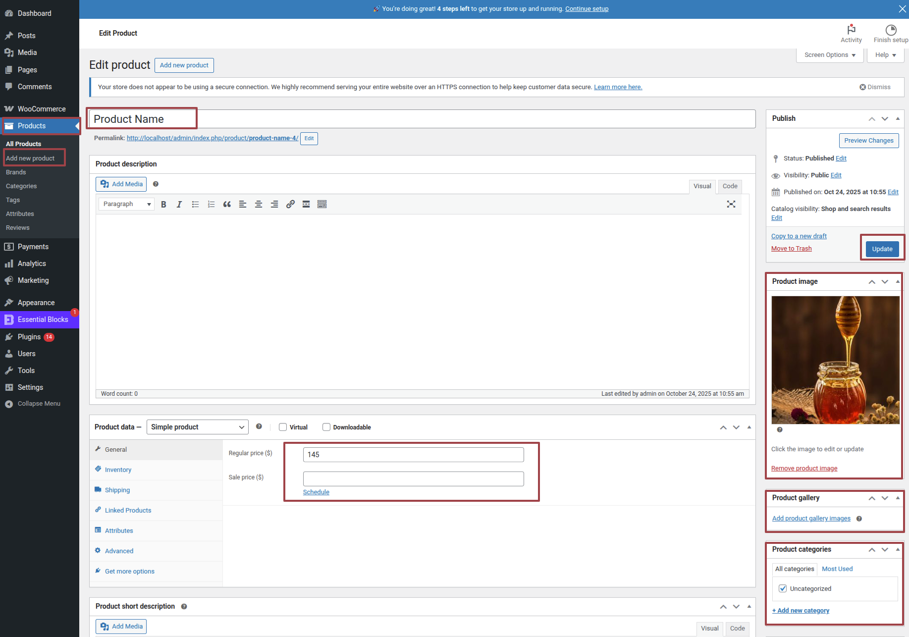 2) Go to Dashboard ► Products ► Add New.