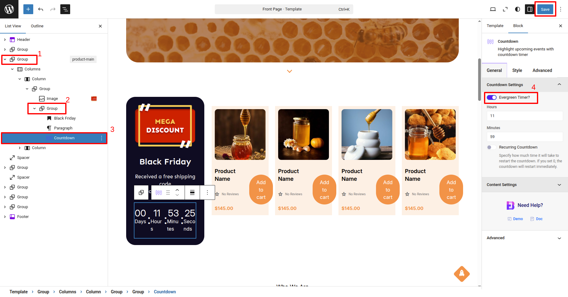 2) Go to Dashboard ► Appearance ► Editor ► Countdown ► Everygreen Timer .