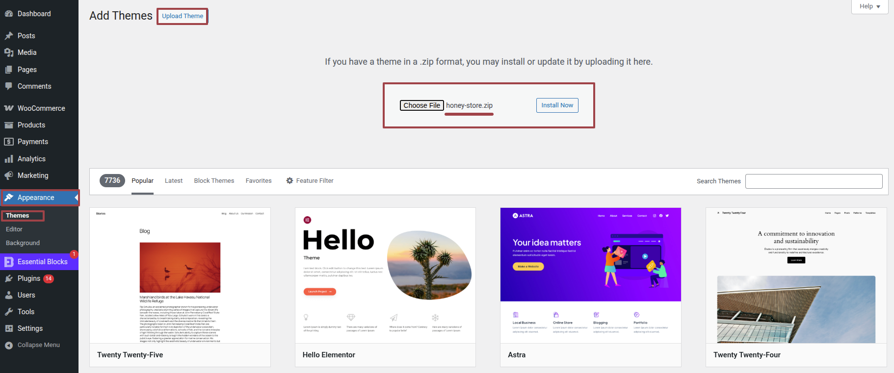 Extract the zipped package downloaded from Wordpress.org to your desktop, in the extracted package you will find the "honey-store.zip" file which is the WordPress theme.