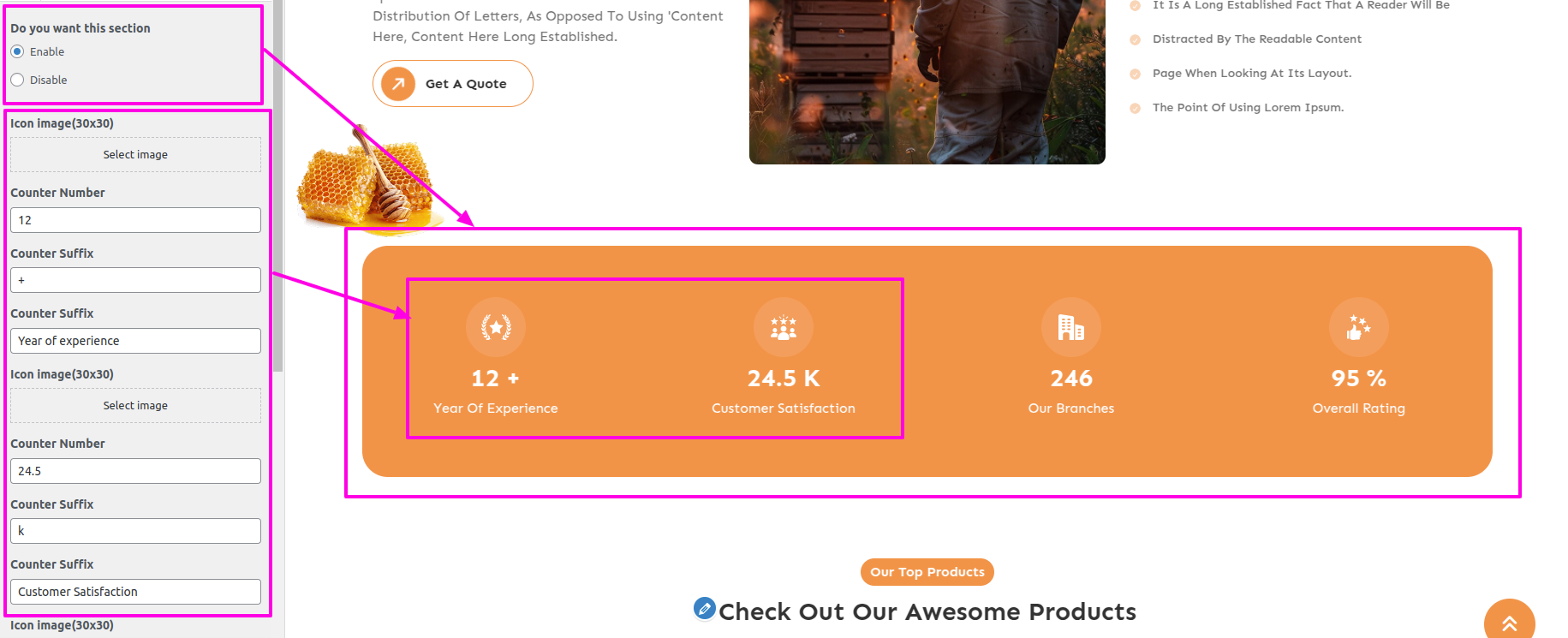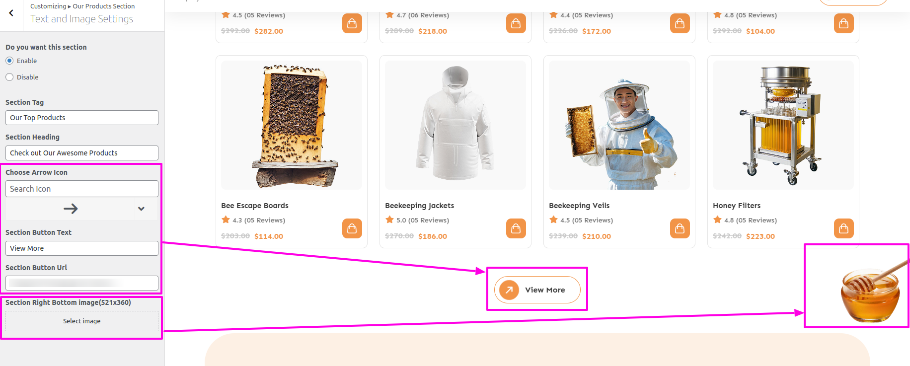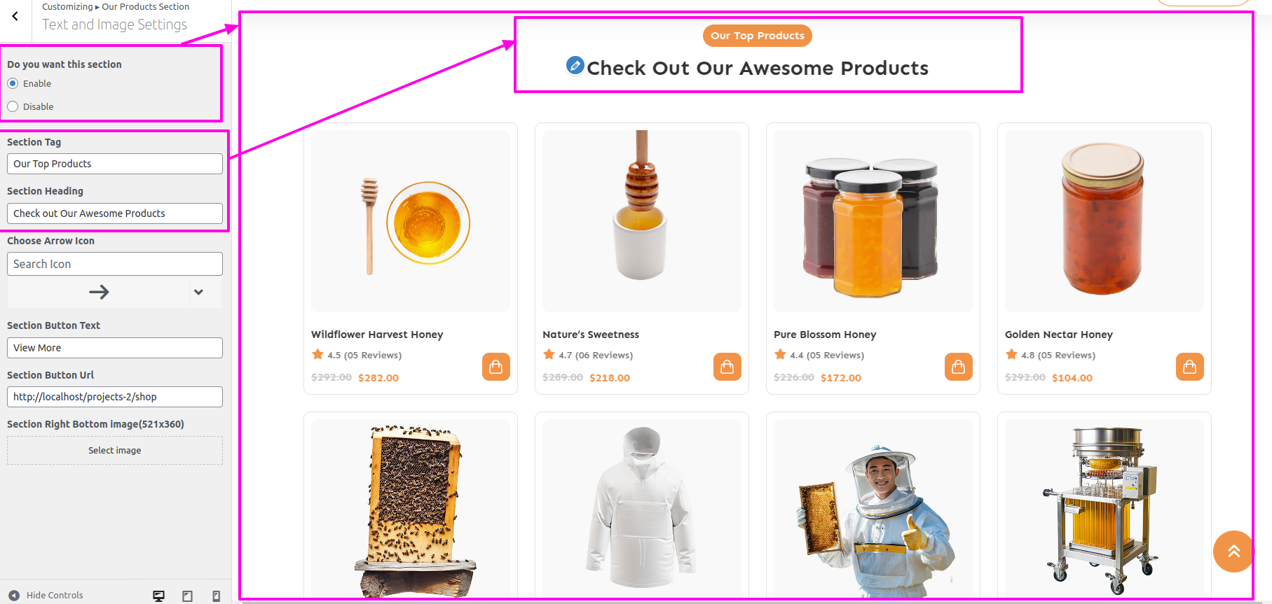 Select The Appearance → Select The Customize → Theme Settings → Our Top Products → Text Settings