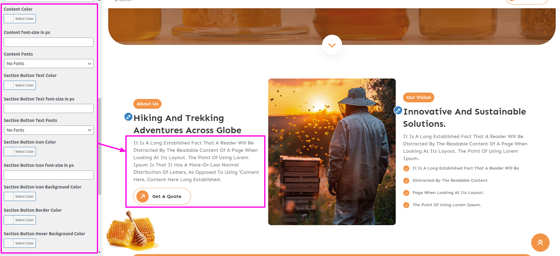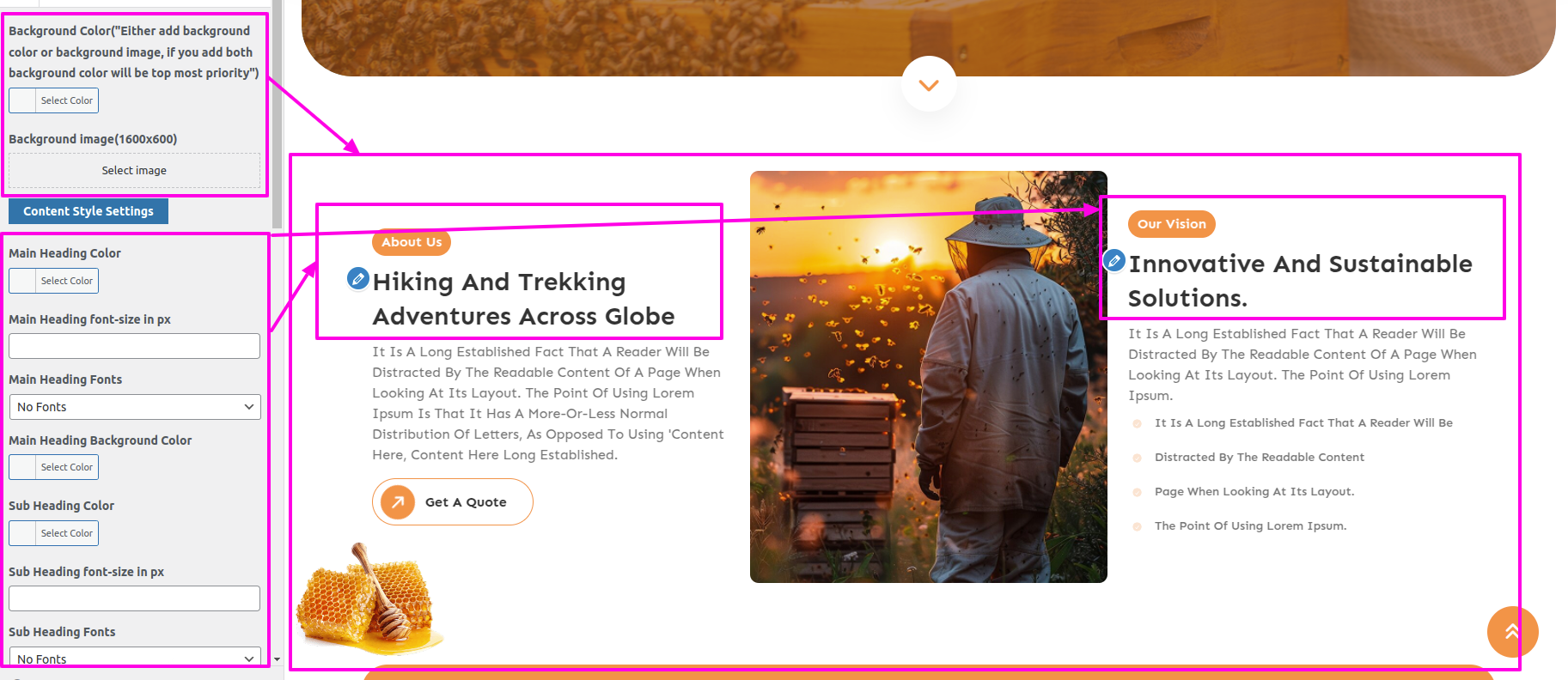 Select The Appearance → Select The Customize → Theme Settings → About Us → Style Settings