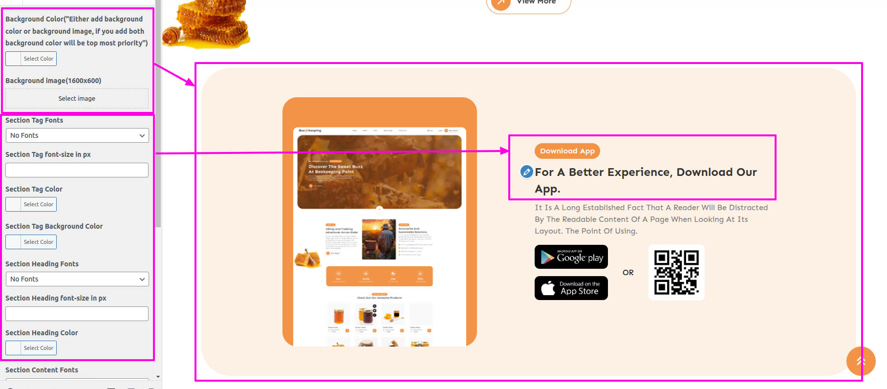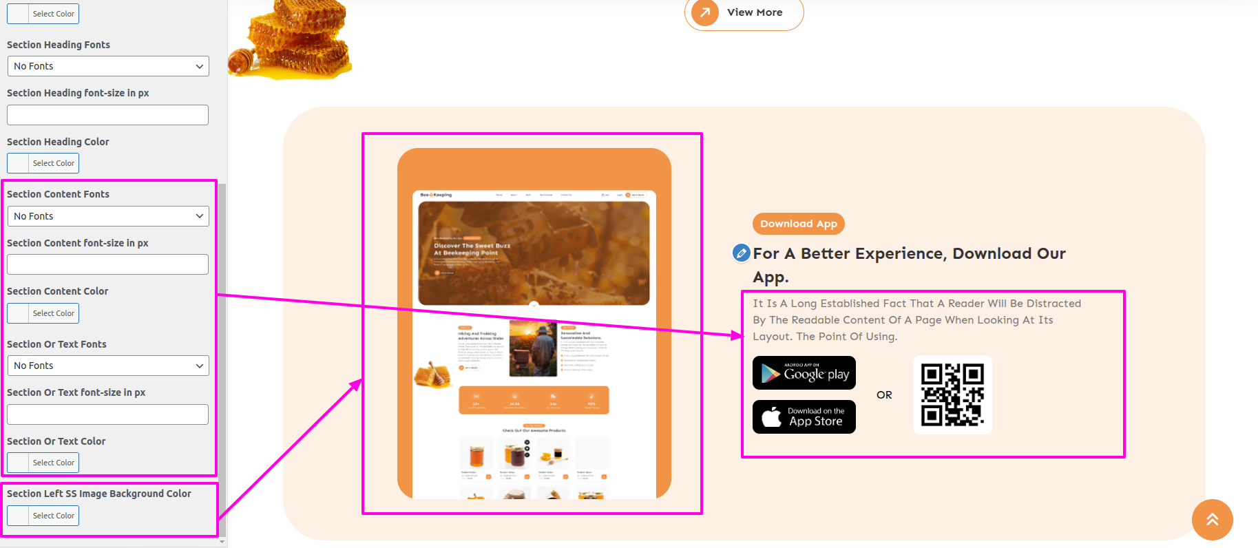 Select The Appearance → Select The Customize → Theme Settings → Download app → Text Settings