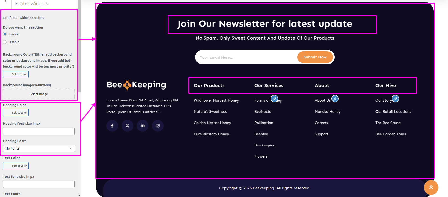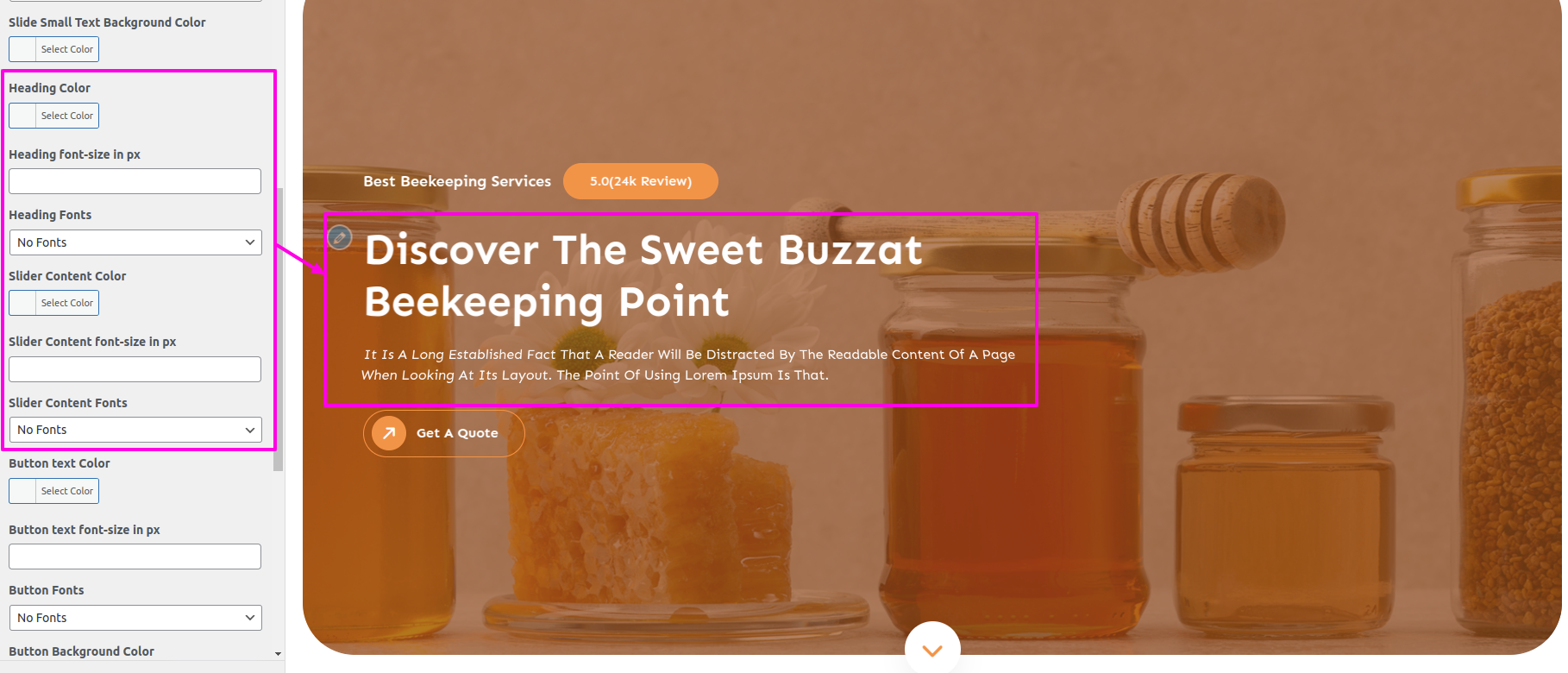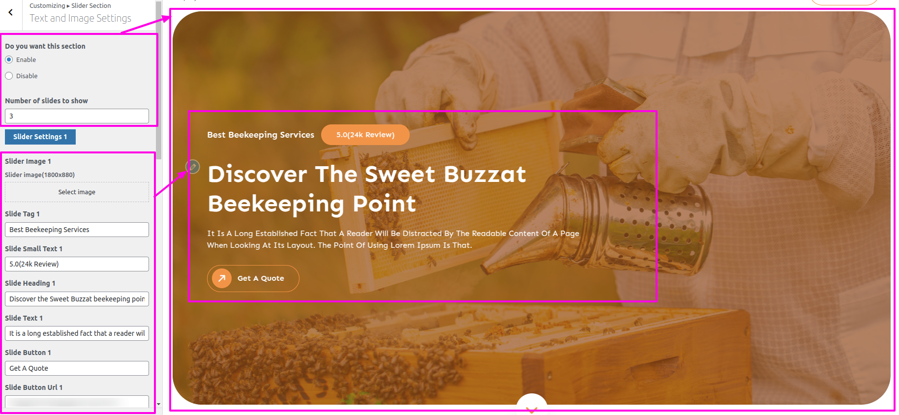 Select The Appearance → Select The Customize → Theme Settings → Slider → Text and Image Settings