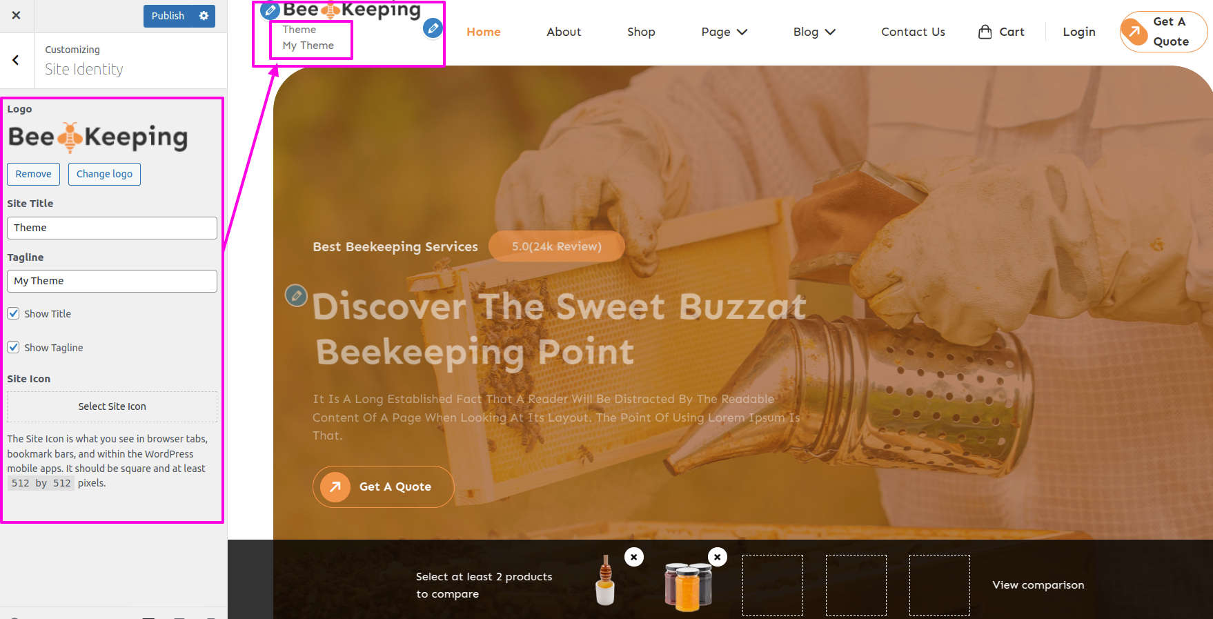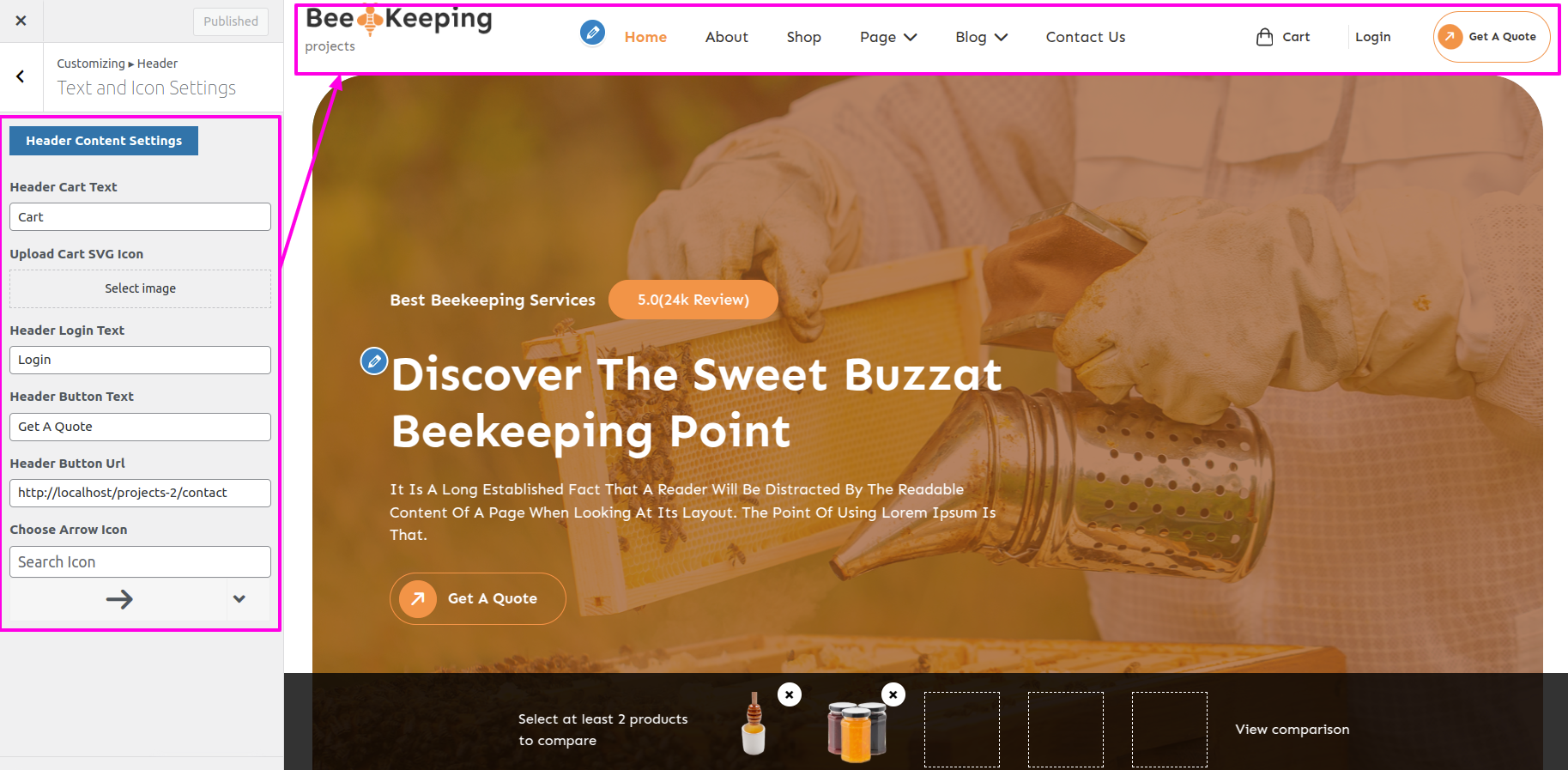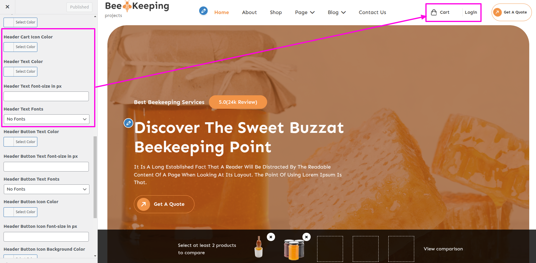 Select The Appearance → Select The Customize → Theme Settings → Header → Text and Icon Settings