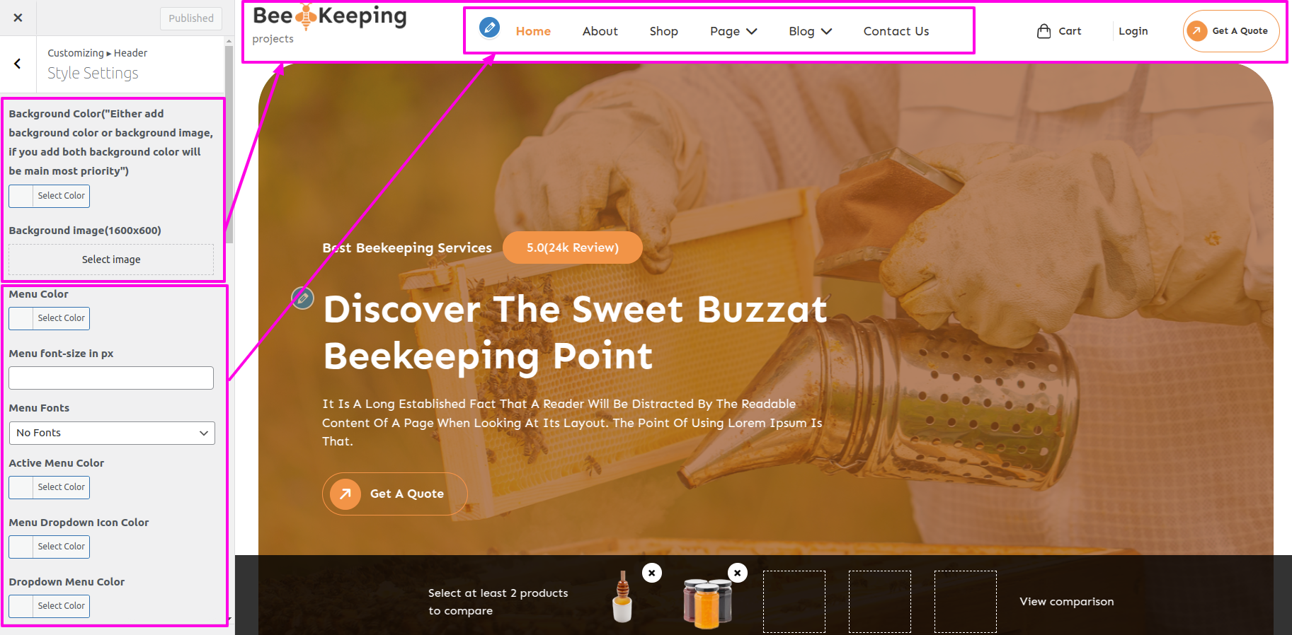 SelectThe Appearance → Select The Customize → Theme Settings → Header → Style Settings
