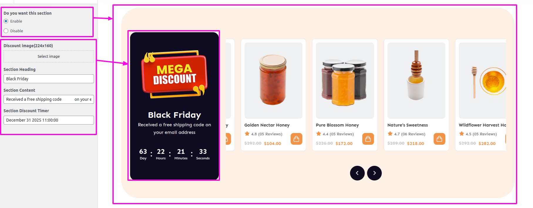 You can add Products from here, and the products with the most sales will appear in the Section.