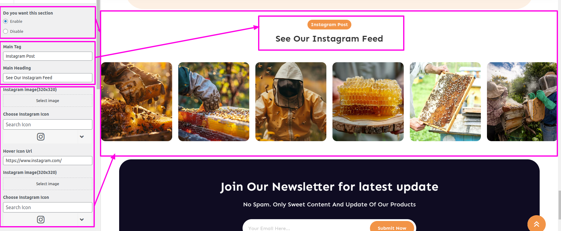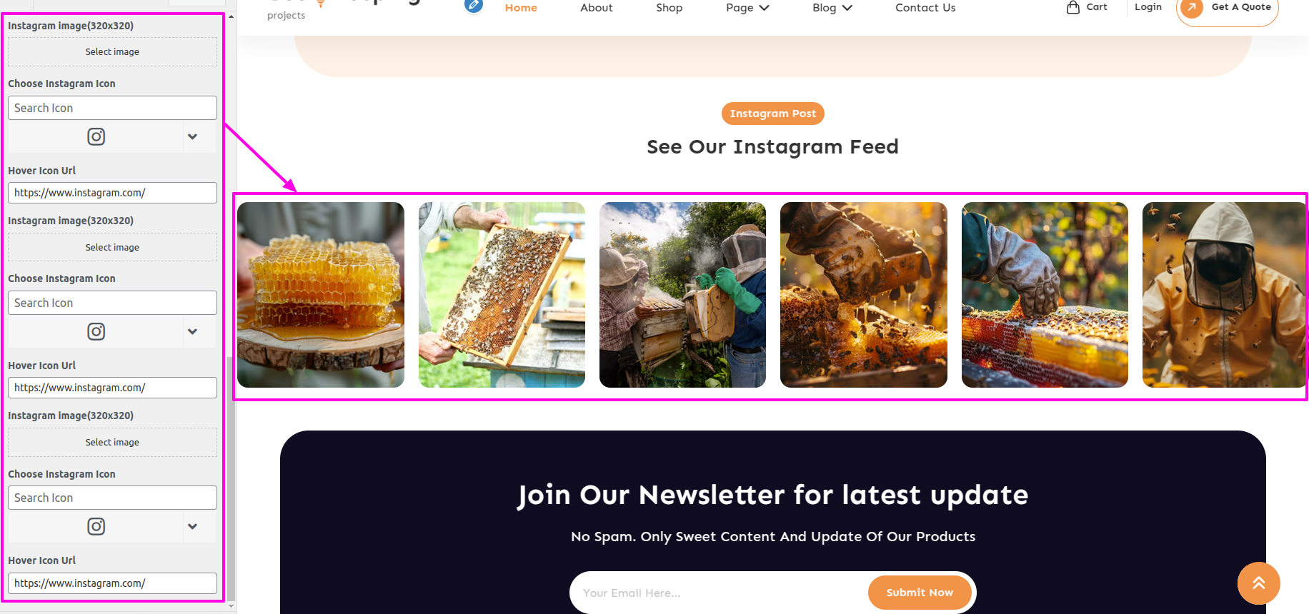 Select The Appearance → Select The Customize → Theme Settings → Instagram Post → Text and Image Settings