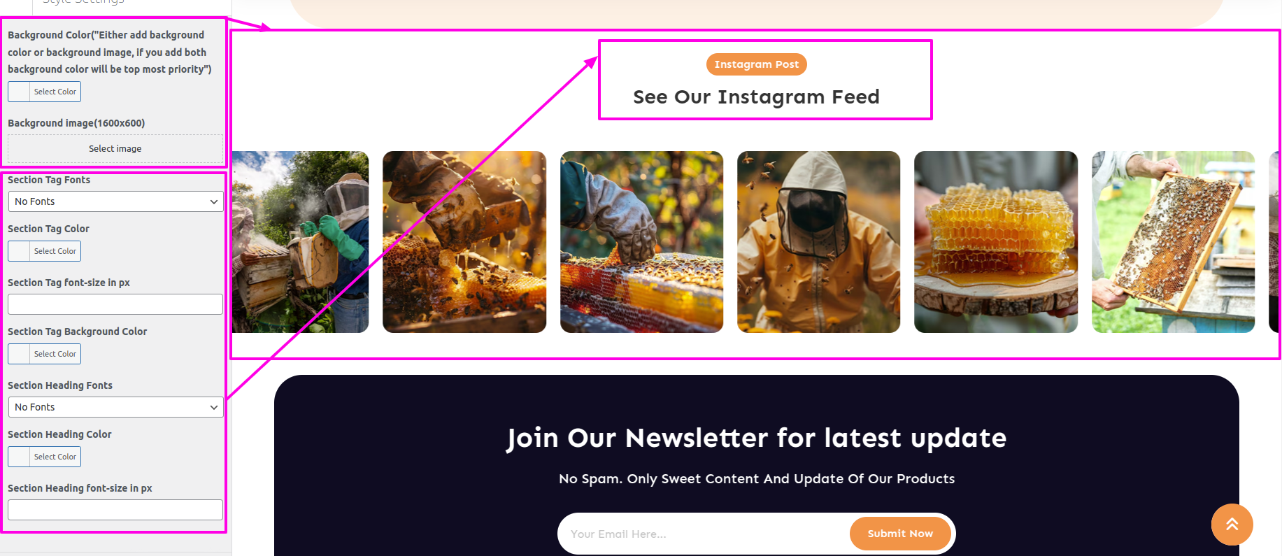Select The Appearance → Select The Customize → Theme Settings → Instagram Post → Style Settings