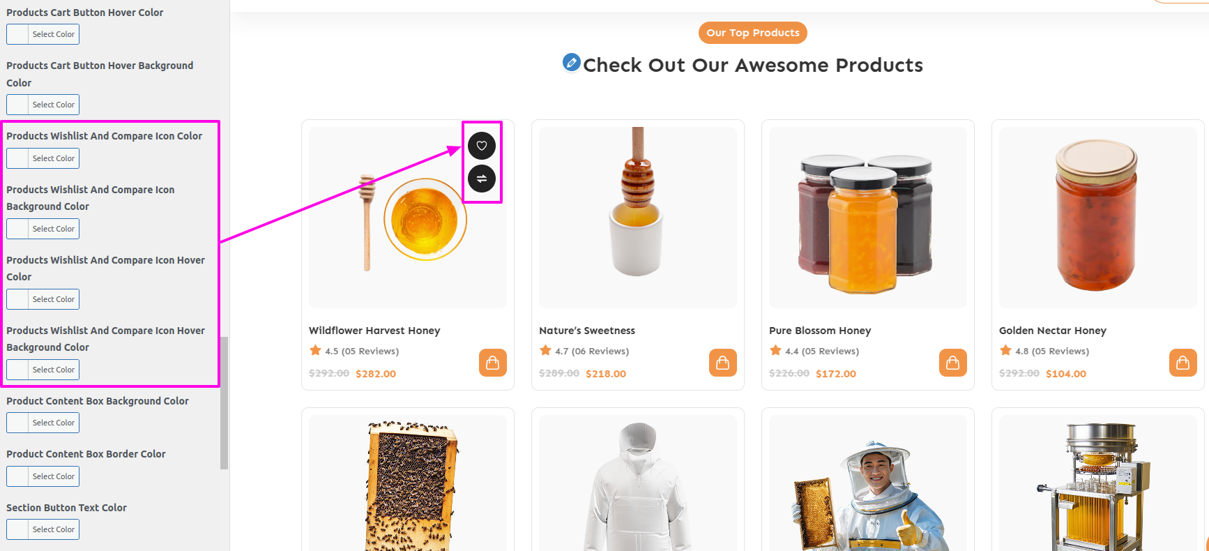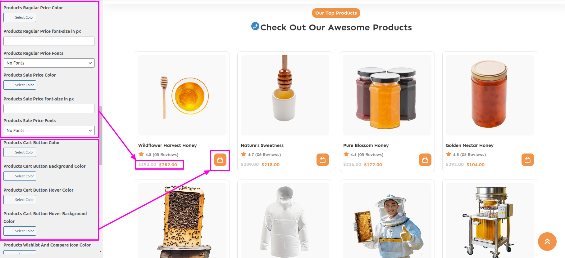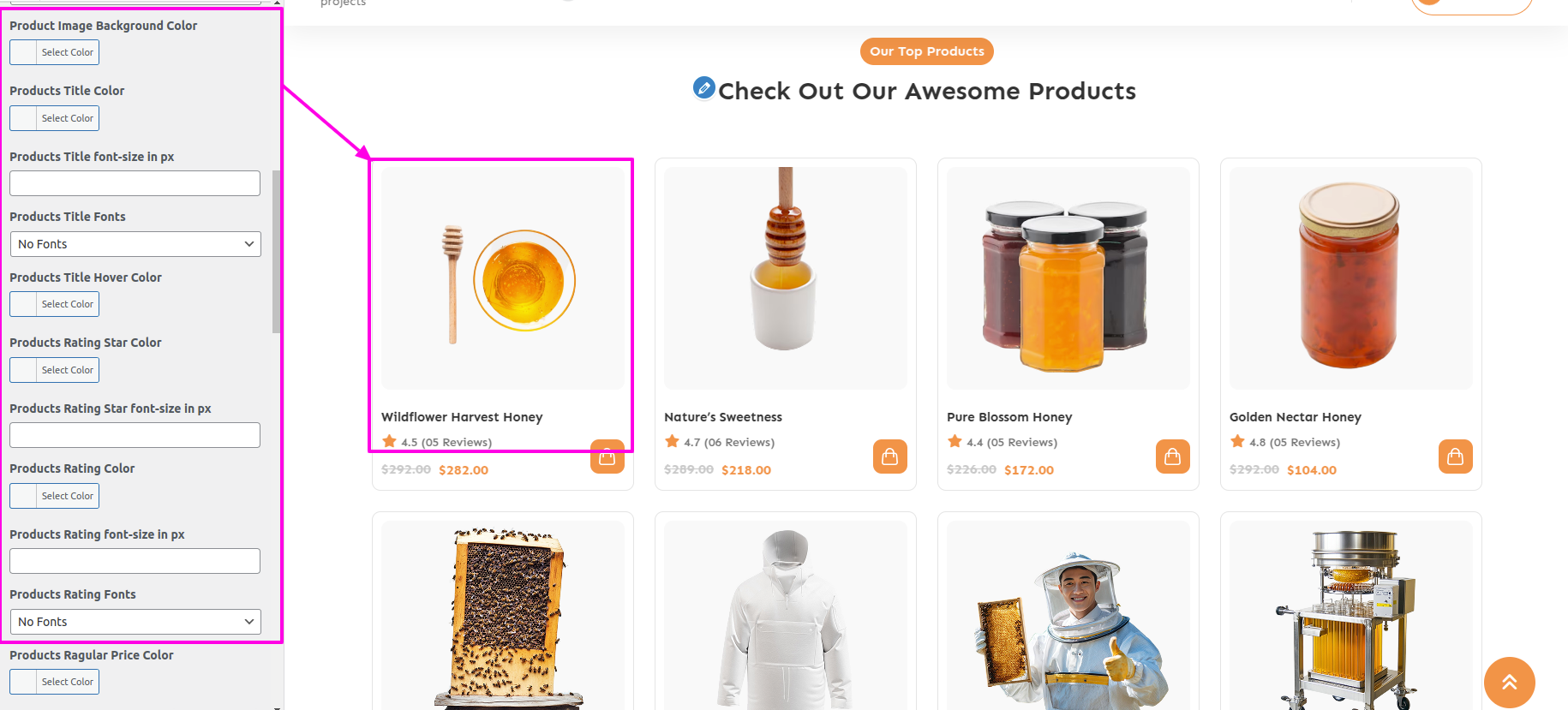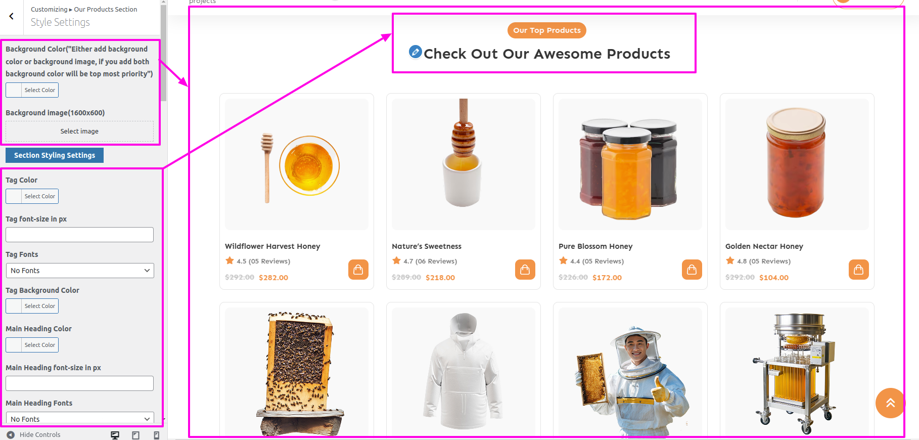 Select The Appearance → Select The Customize → Theme Settings → Our Top Products → Style Settings